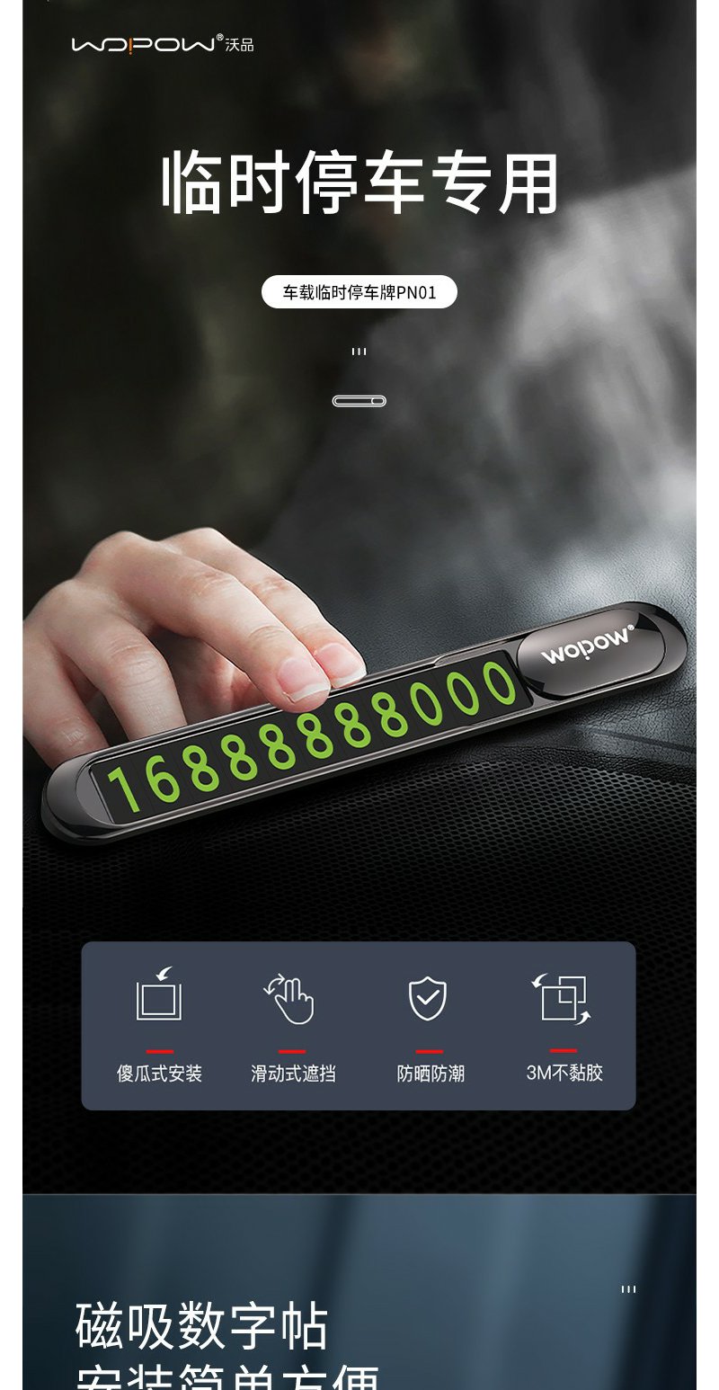 沃品 临时停车号码牌 车载临时荧光磁吸停车牌 PN01
