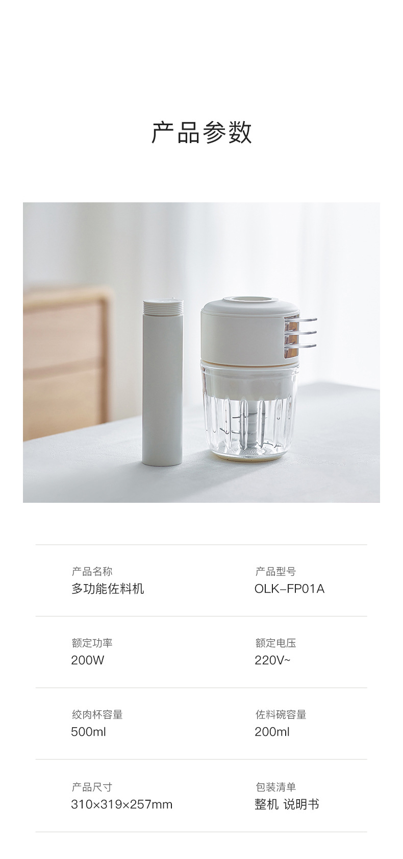 olayks欧莱克绞肉机家用佐料机多功能电动小型搅拌肉馅料理机辅食 心选到家