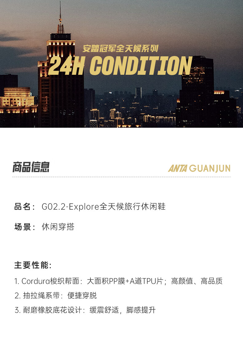 安踏冠军G02-Explore丨城市轻户外女士透气耐磨休闲运动鞋122548803A