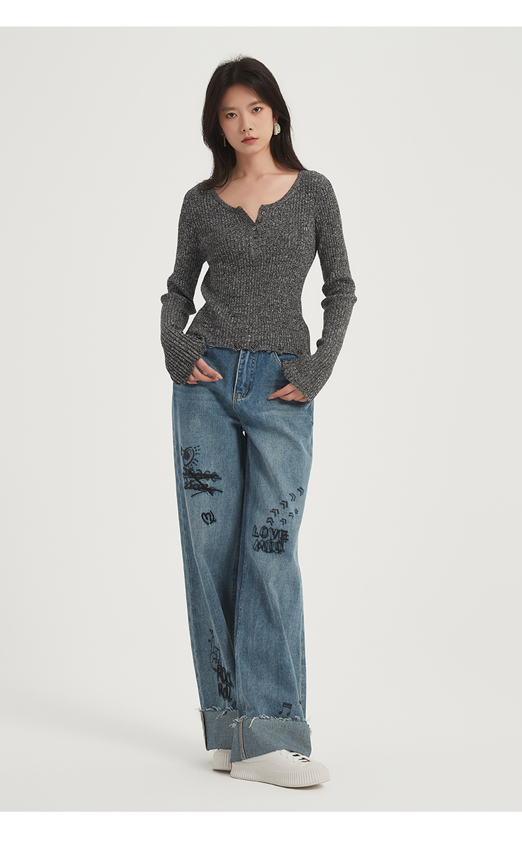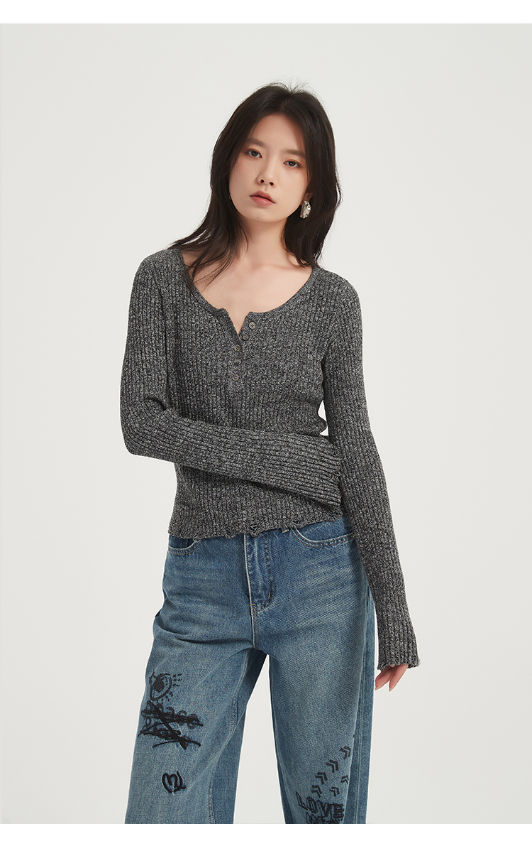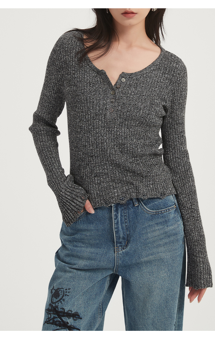 271109903花纱锁骨针织衫