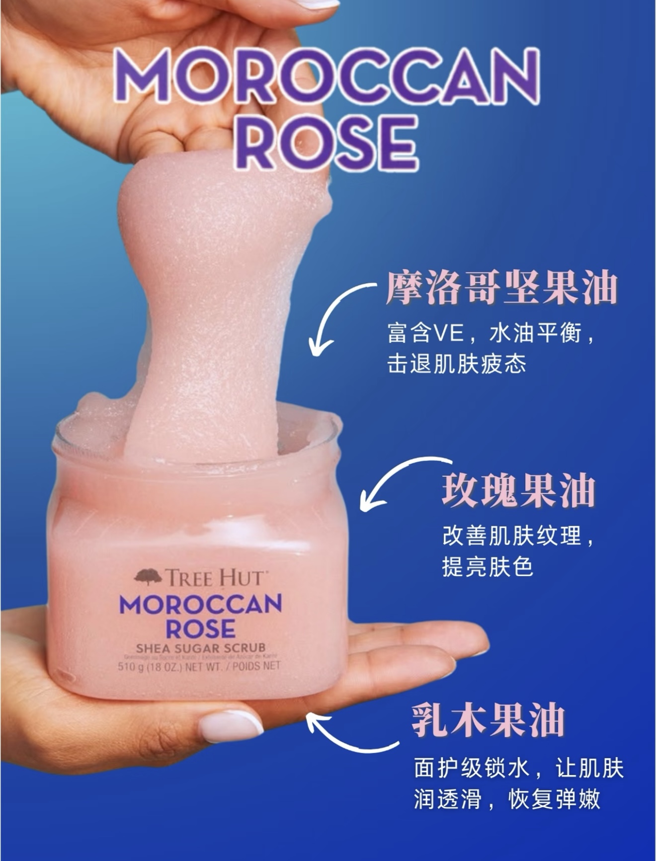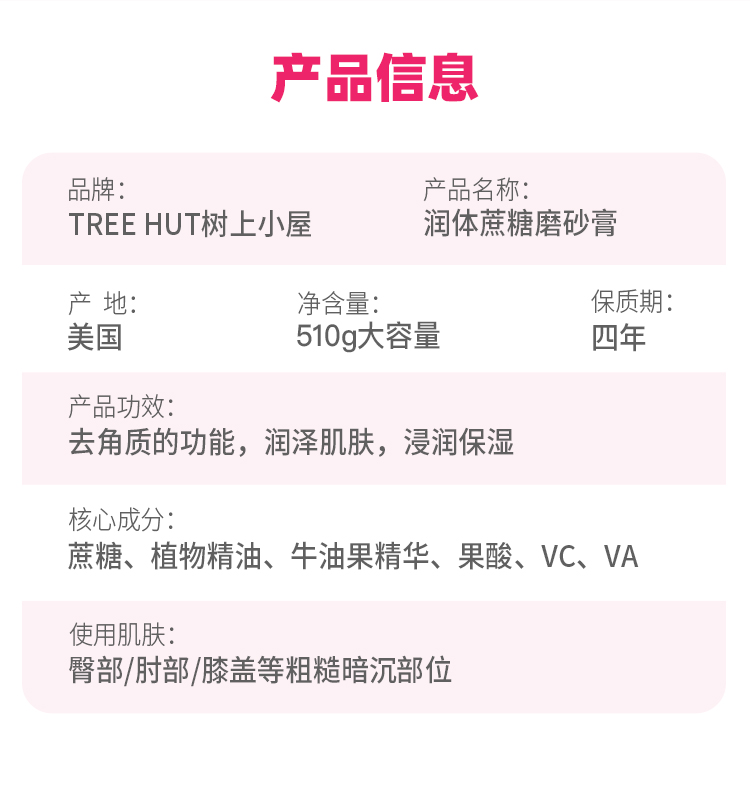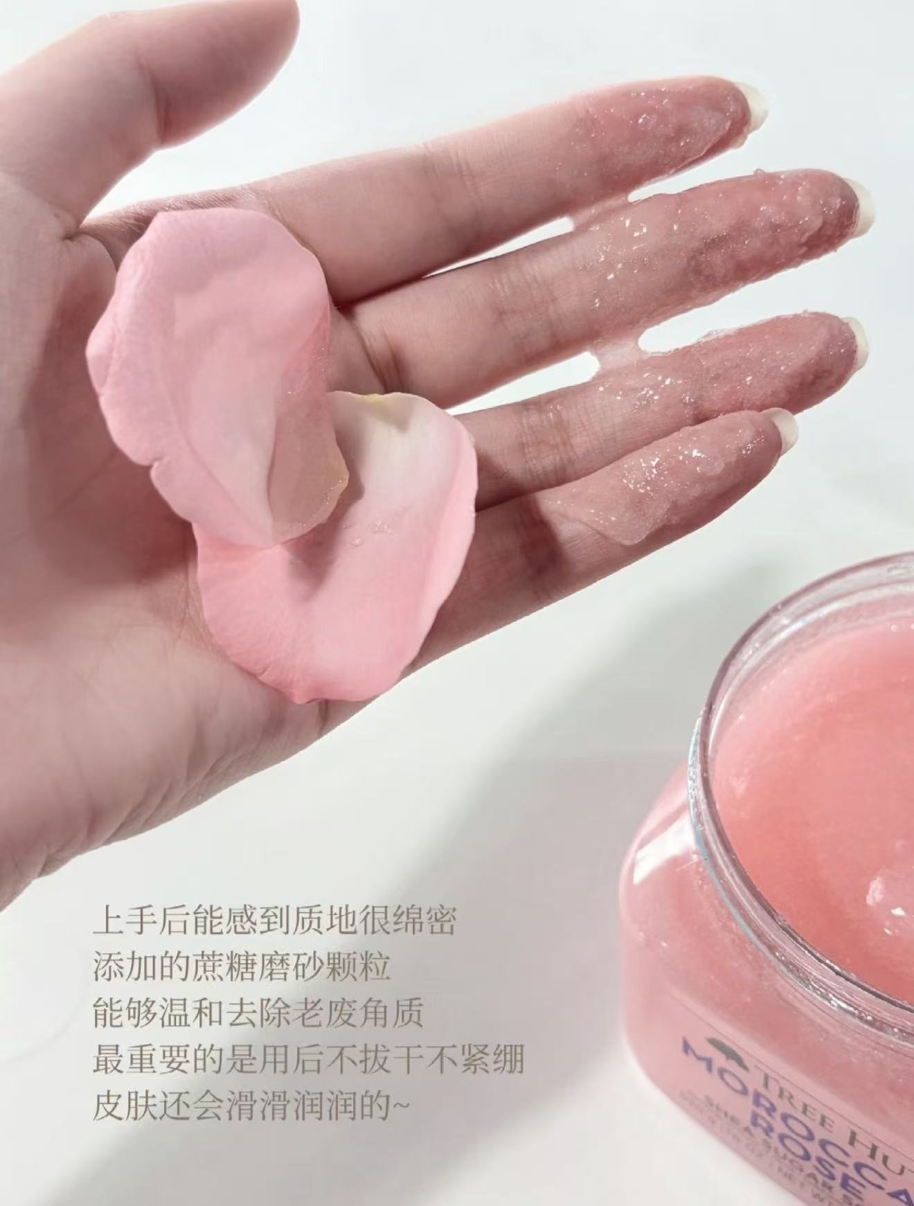 这款磨砂膏用的是天然“蔗糖”+多种植物精油