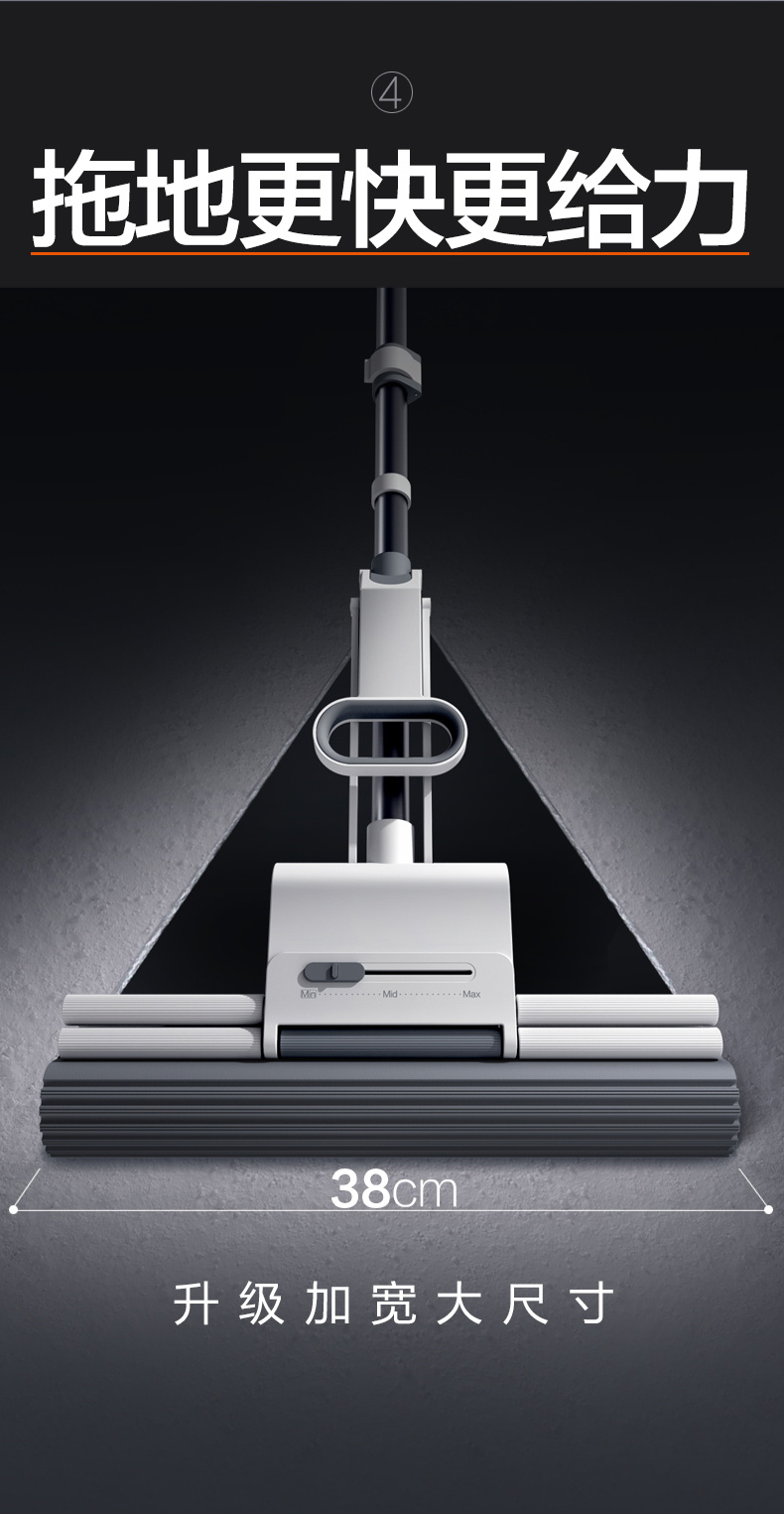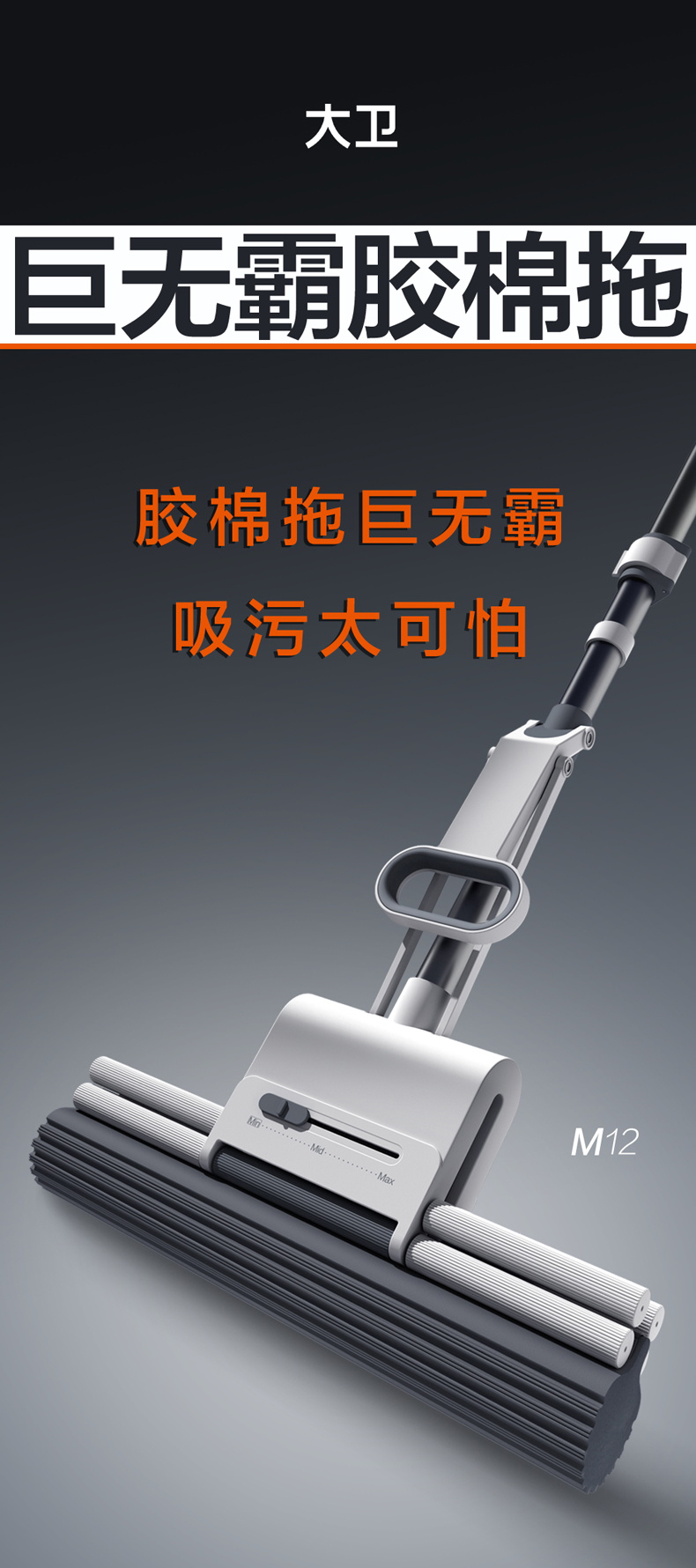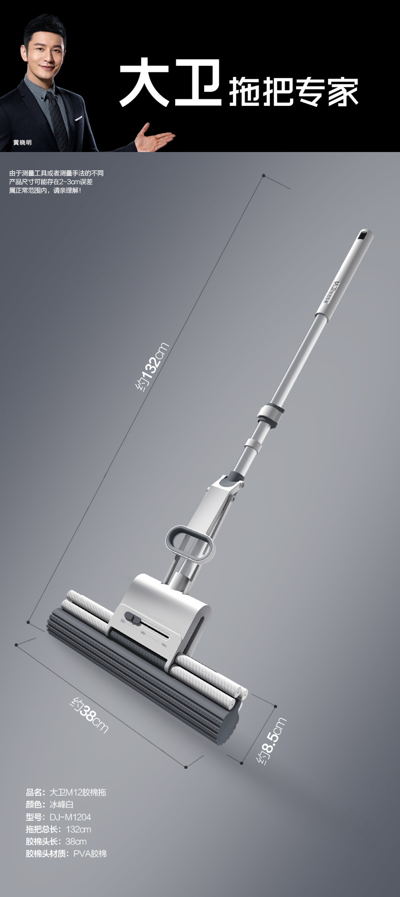 大卫胶棉拖把38cm海绵头杆长132cm2头M12巨无霸滚轮式大号胶棉拖大卫M12