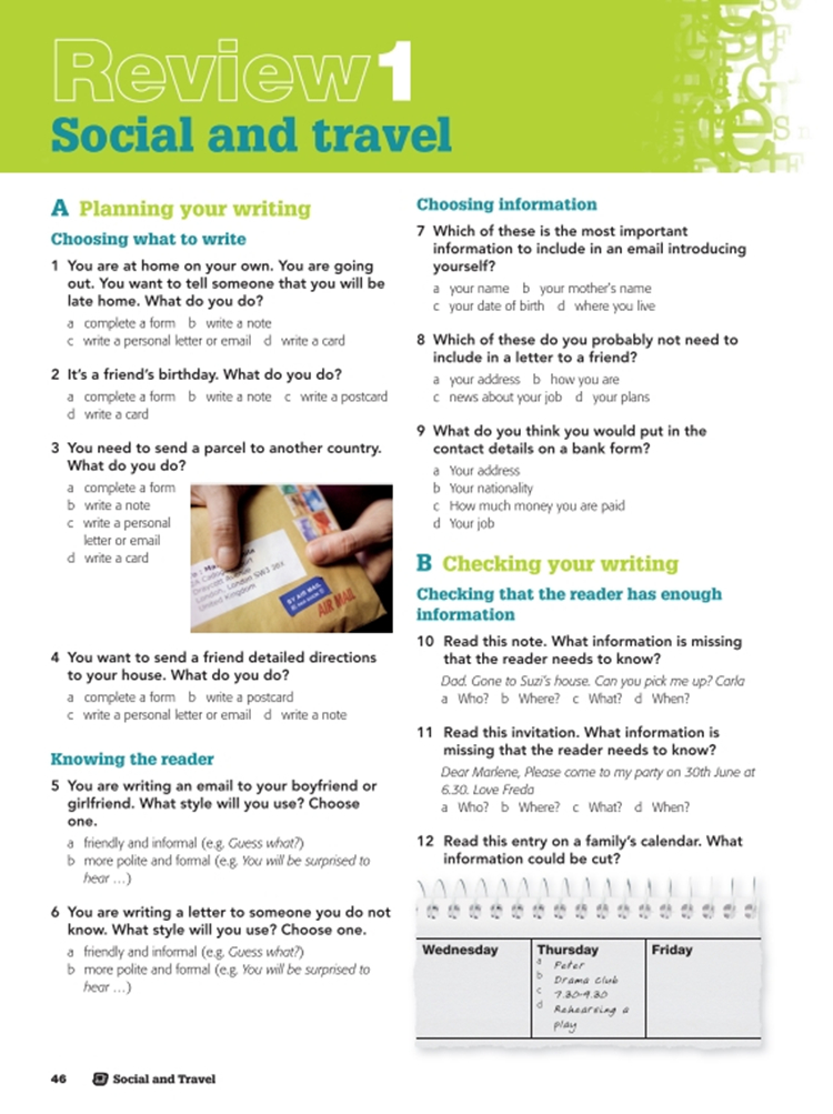 The exercises in each unit help you develop useful skills such as planning, thinking about the reader and checking your work. It is designed to help you with writing you will need to do when communicating in English at home or when visiting another country.