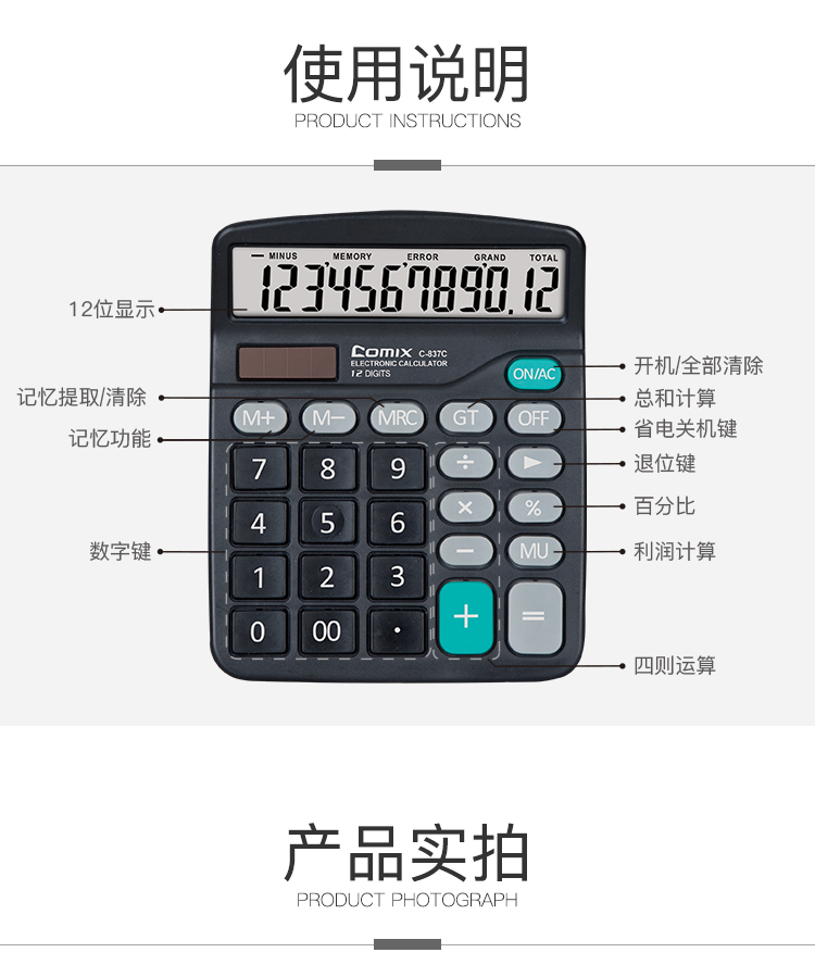 【仅供集采】齐心 C-837C 中台太阳能计算器10个/盒