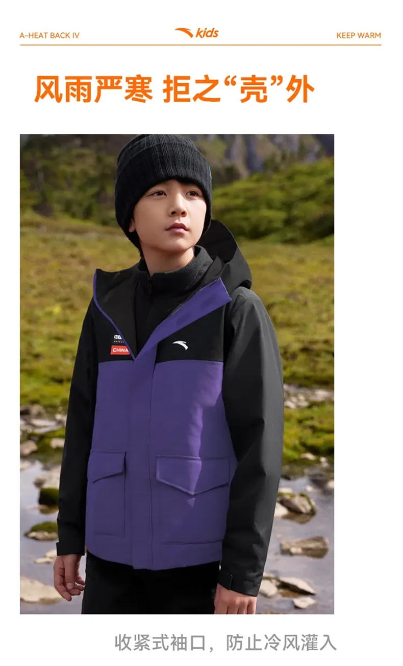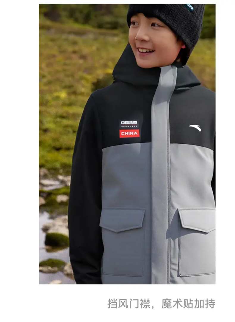 安踏儿童羽绒服男大童装中国冰雪系列热返科技保暖防风羽绒服外套A72545905A