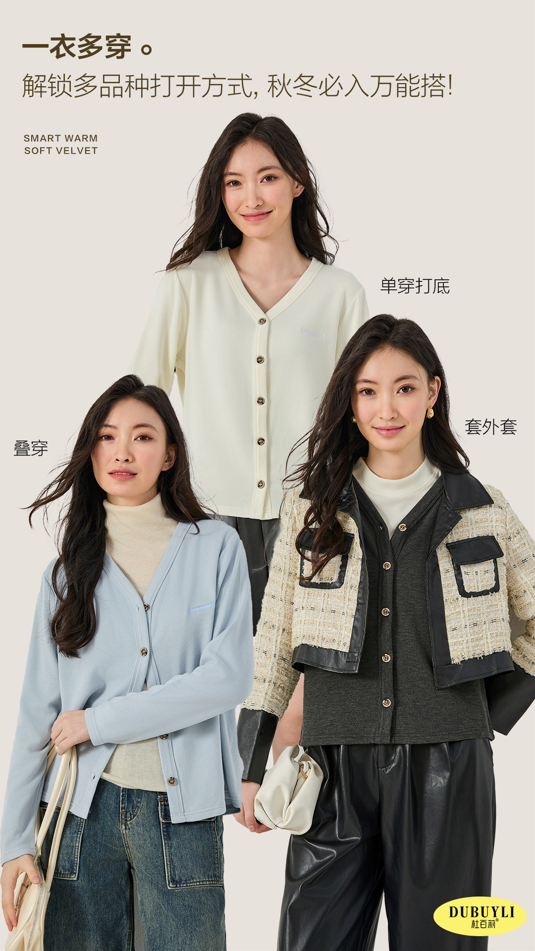 优选丨秋冬温柔开挂!【DUBAILI--智暖柔绒天丝羊毛万能开衫】双面柔绒(暖感开衫)41°优暖腈纶 莱赛尔垂顺透气 绵羊毛质感 暖而不重 轻盈随行 优雅纽扣V领 多种穿法与扣法随心搭配