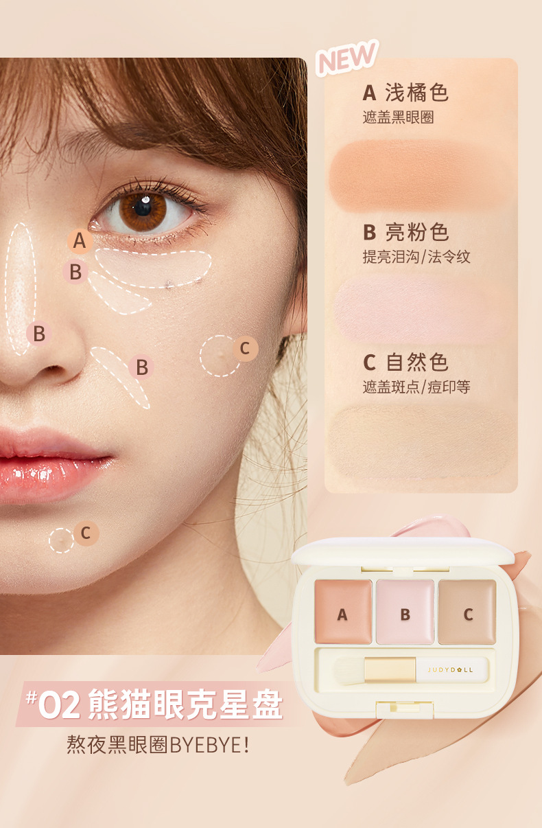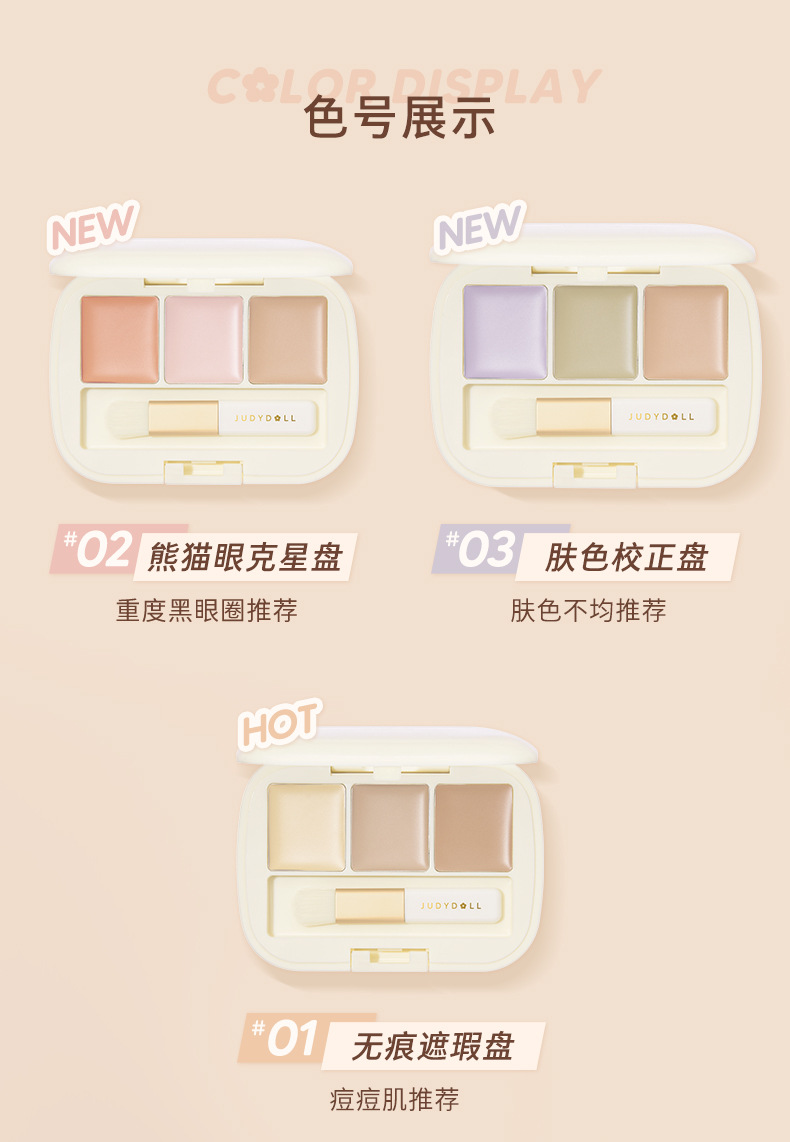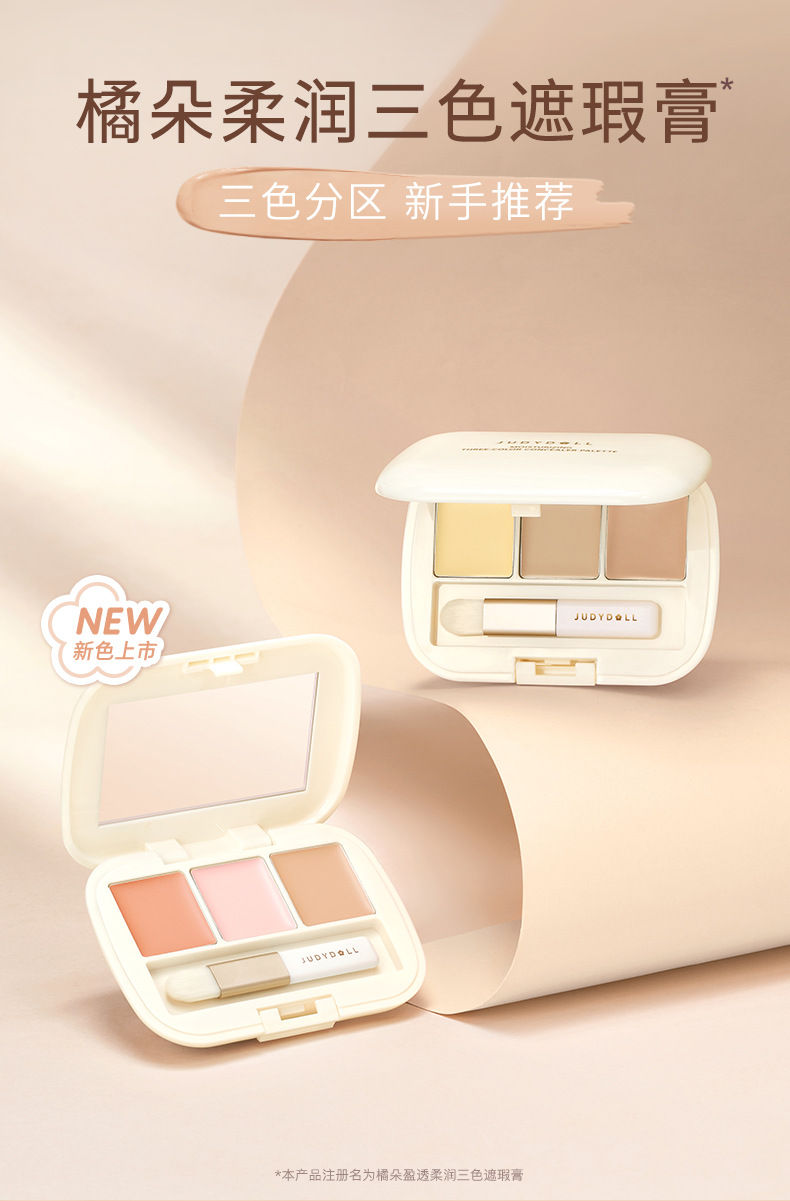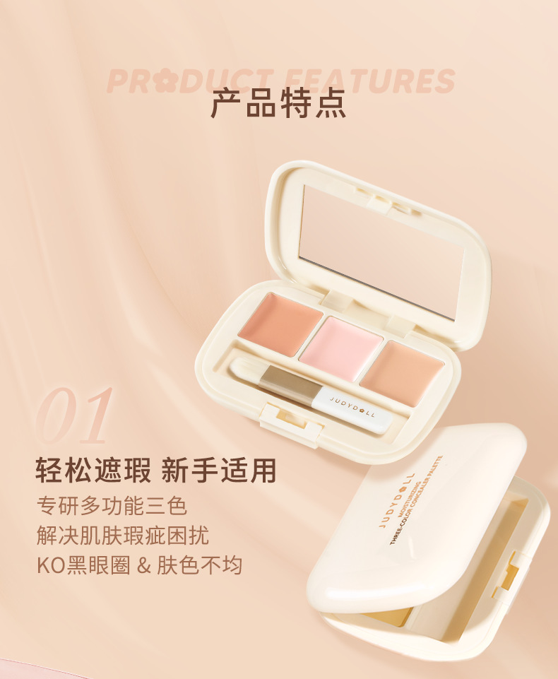 Judydoll橘朵三色遮瑕盘眼部遮瑕遮盖斑点痘印奶油乳化彩色遮瑕膏 心选到家