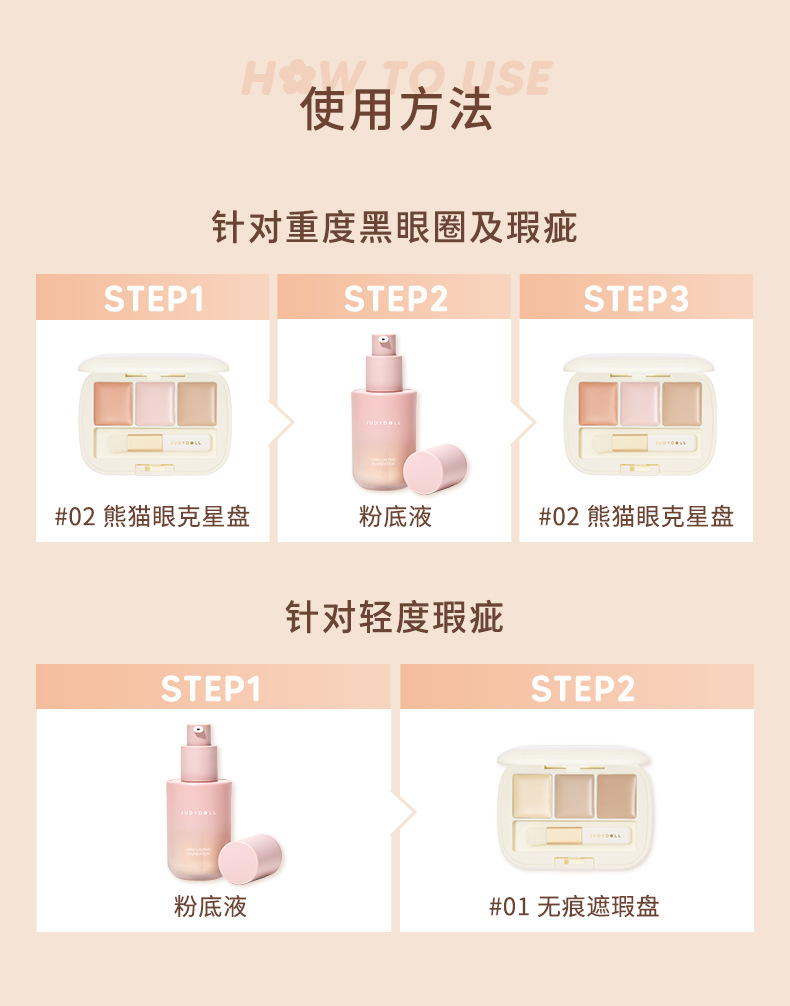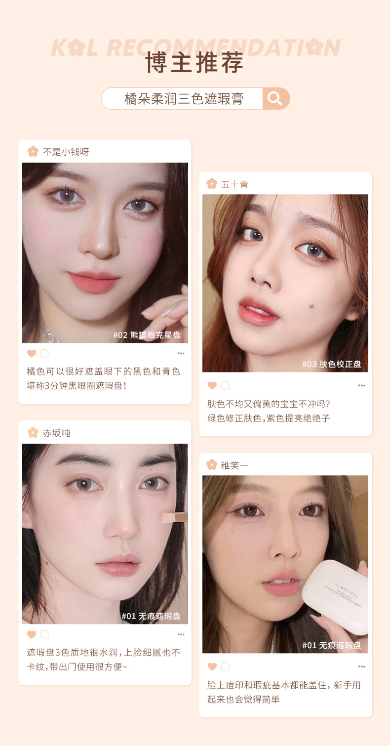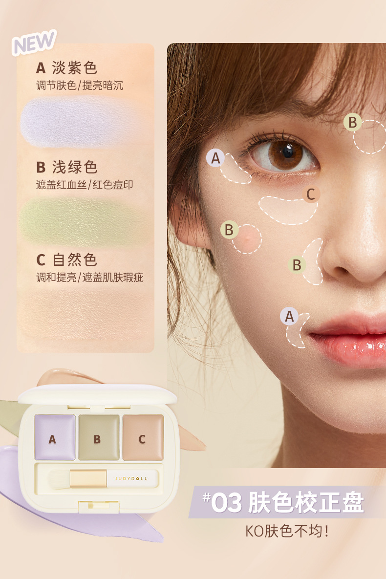 Judydoll橘朵三色遮瑕盘眼部遮瑕遮盖斑点痘印奶油乳化彩色遮瑕膏 心选到家
