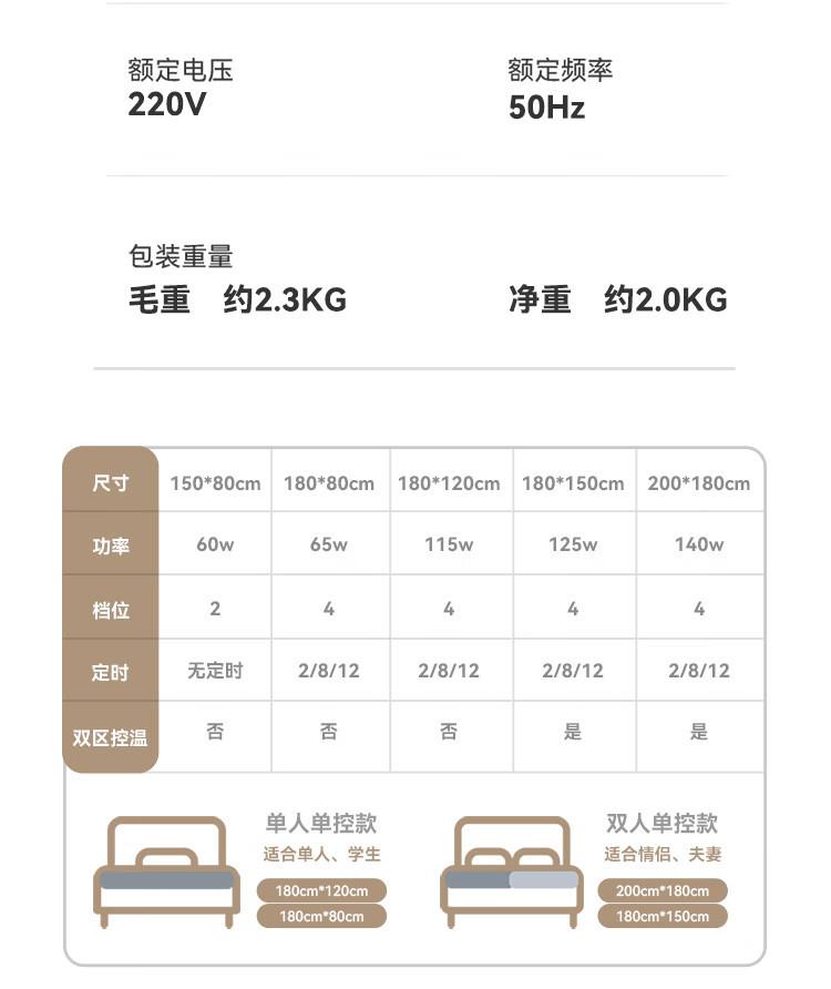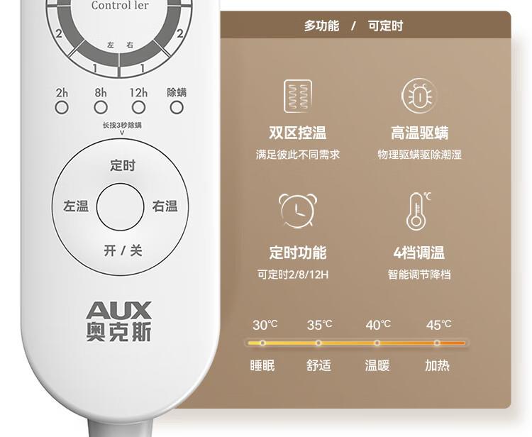 【奥克斯石墨烯电热毯电褥子】单人双人双控家用学生宿舍可调温电热垫
