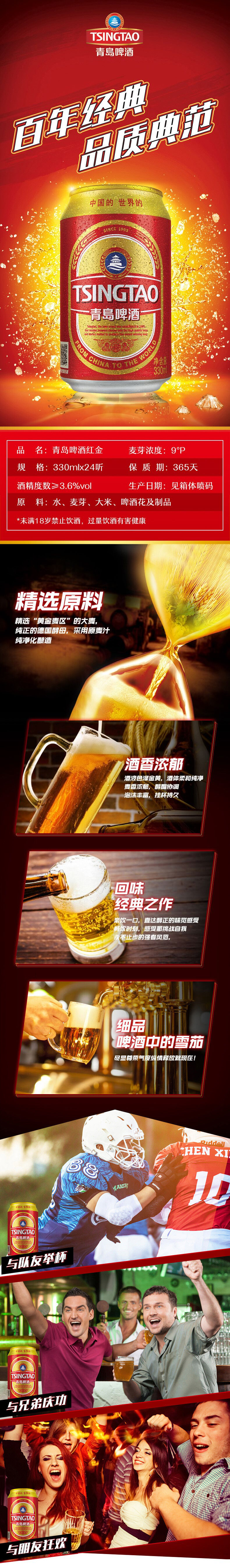 青岛啤酒 红金9度330ml*24听 罐装拉格黄啤酒整箱