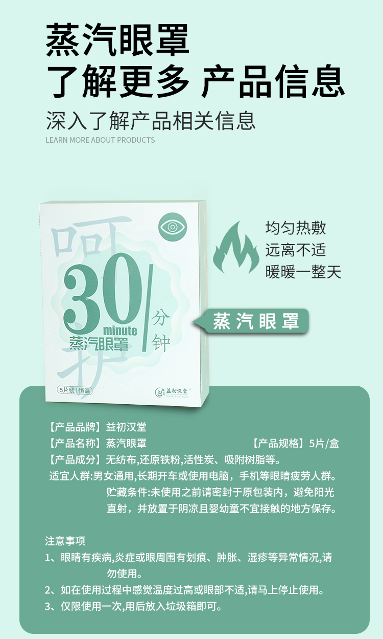 【益初汉堂 蒸汽眼罩】舒缓疲劳滋润眼周 放松眼部 舒适服帖 温和滋养 5片/盒
