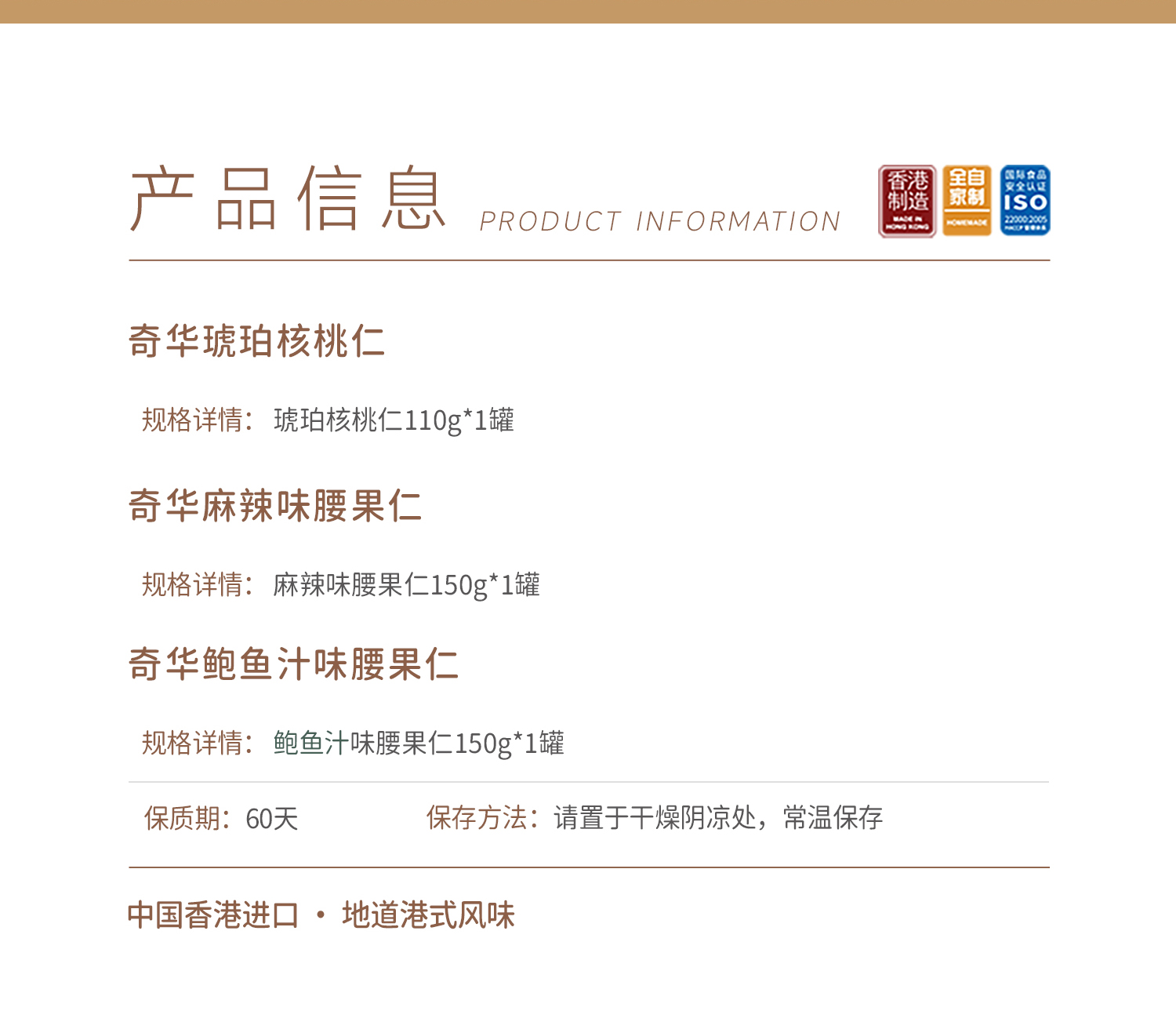 【琥珀核桃仁/麻辣腰果仁】奇华饼家麻辣腰果琥珀核桃休闲零食中国香港进口食品