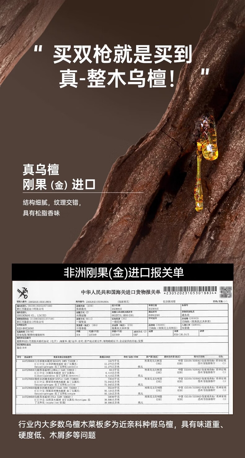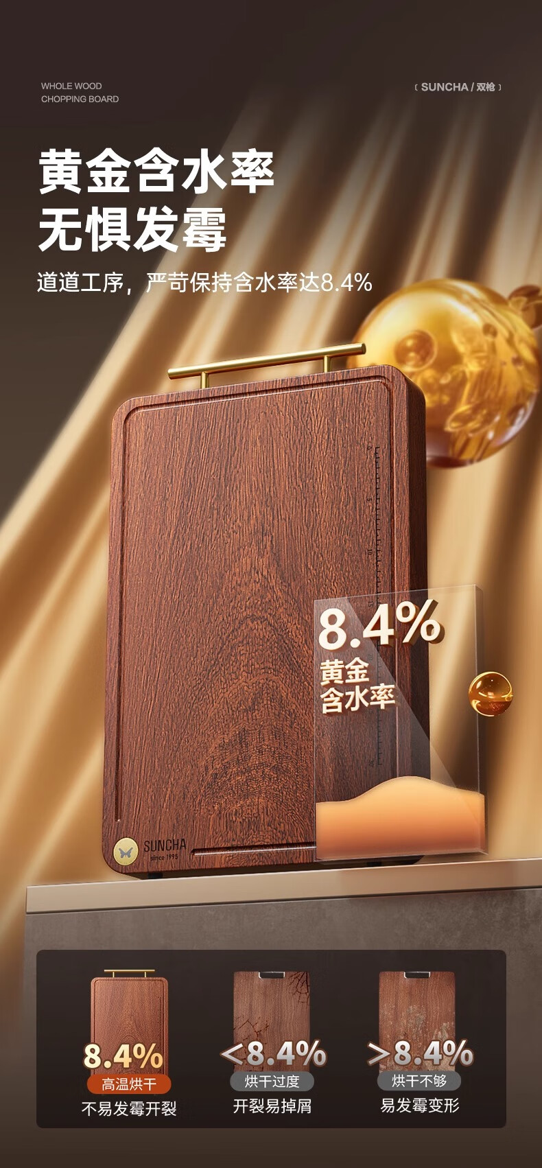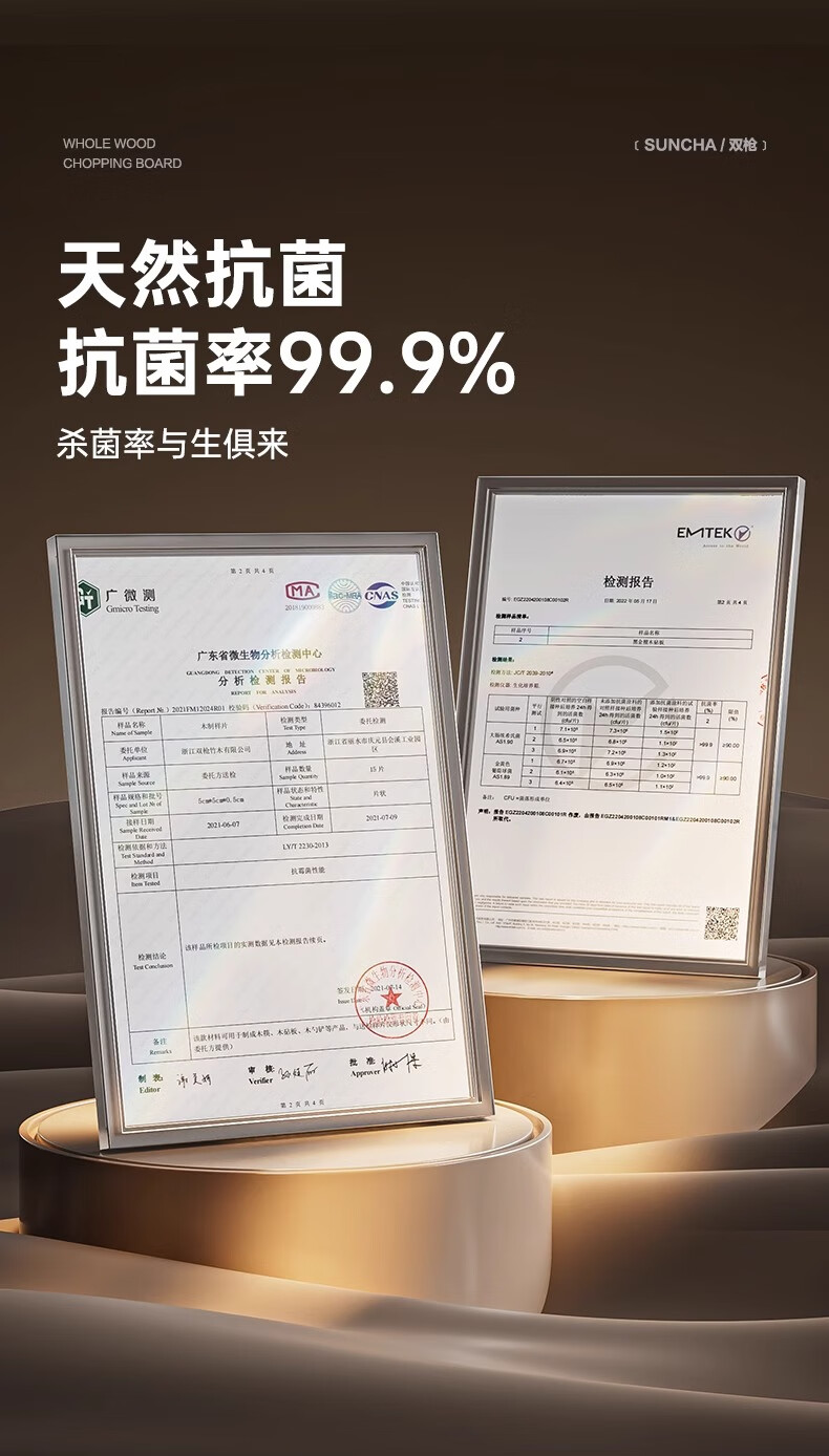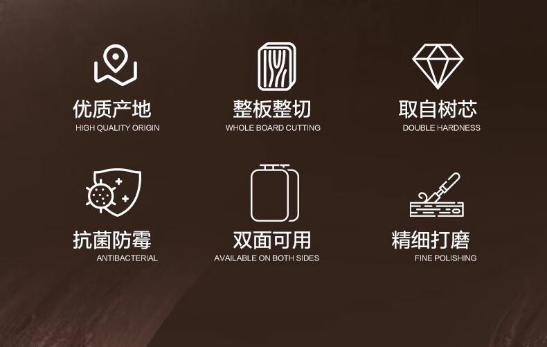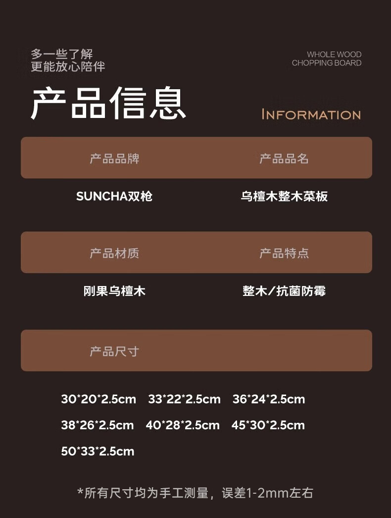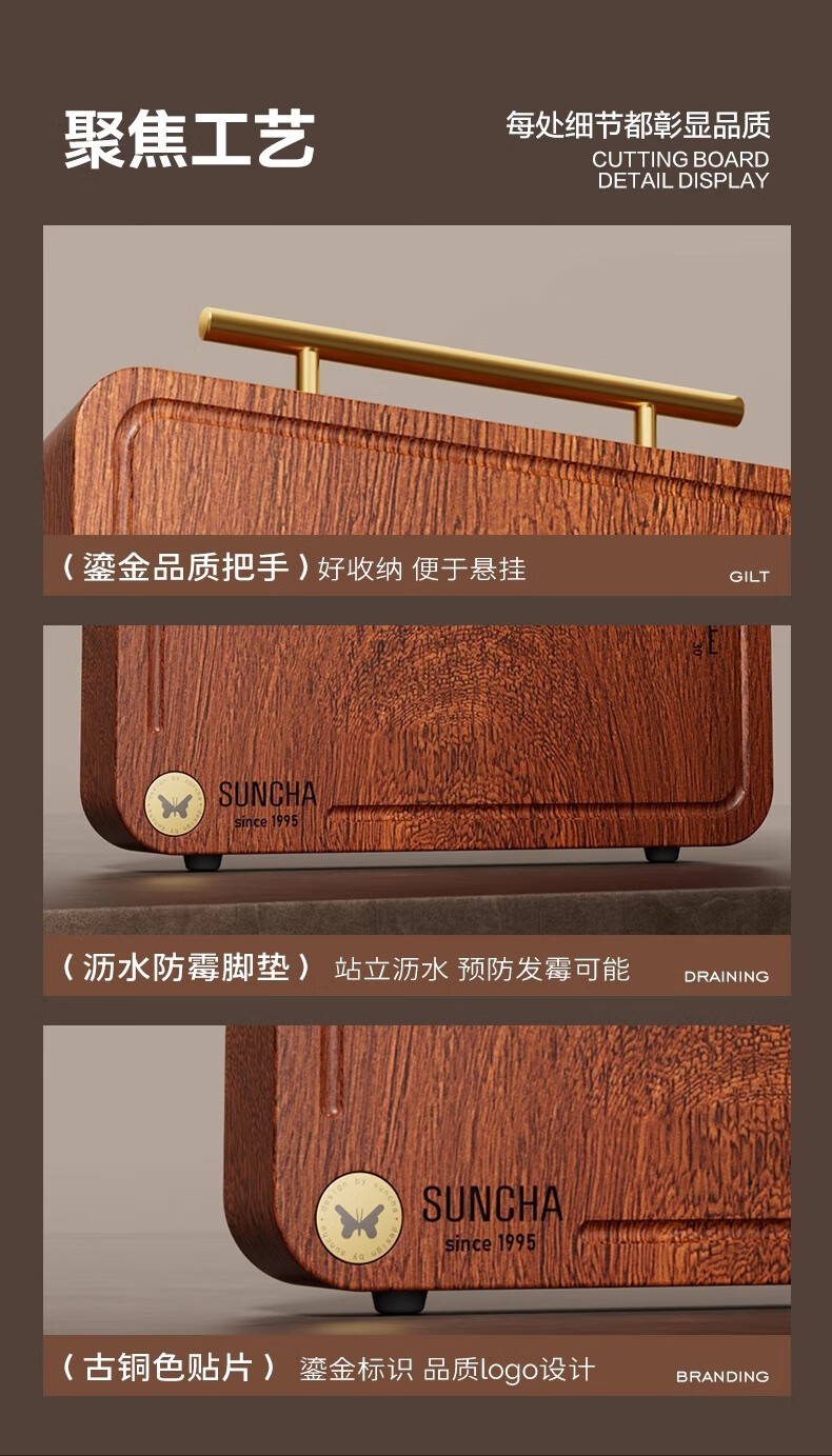 积分免费兑:双枪乌檀木整木菜板实木抗菌防霉家用切菜板案板大号砧板 【整木芯材】41*26cm(含把手)