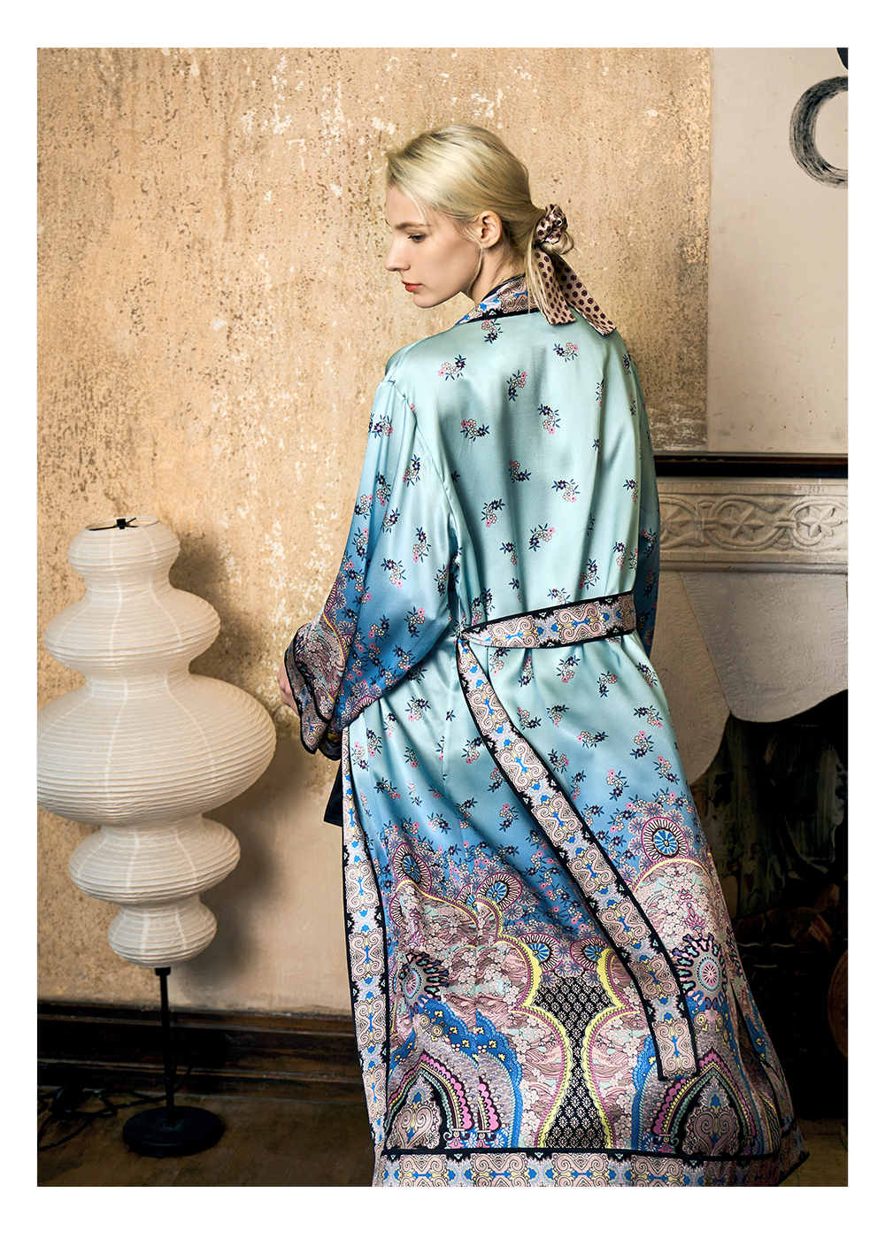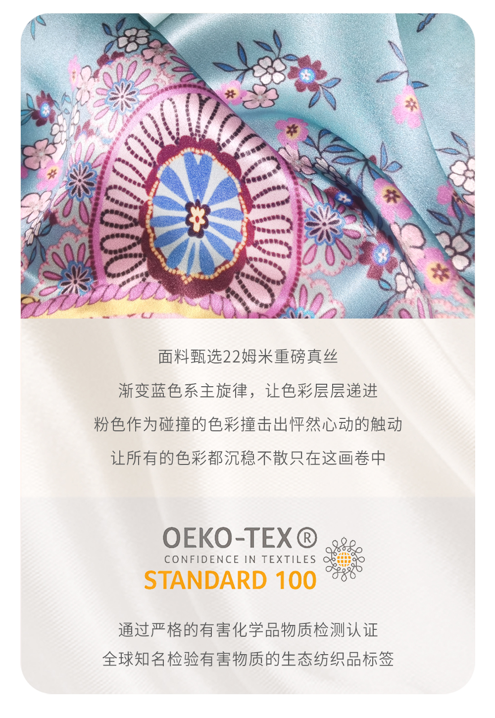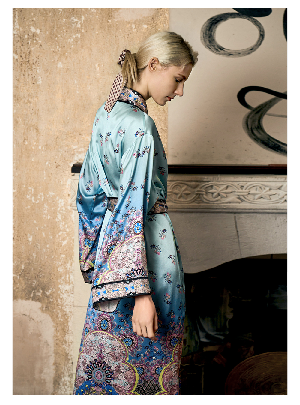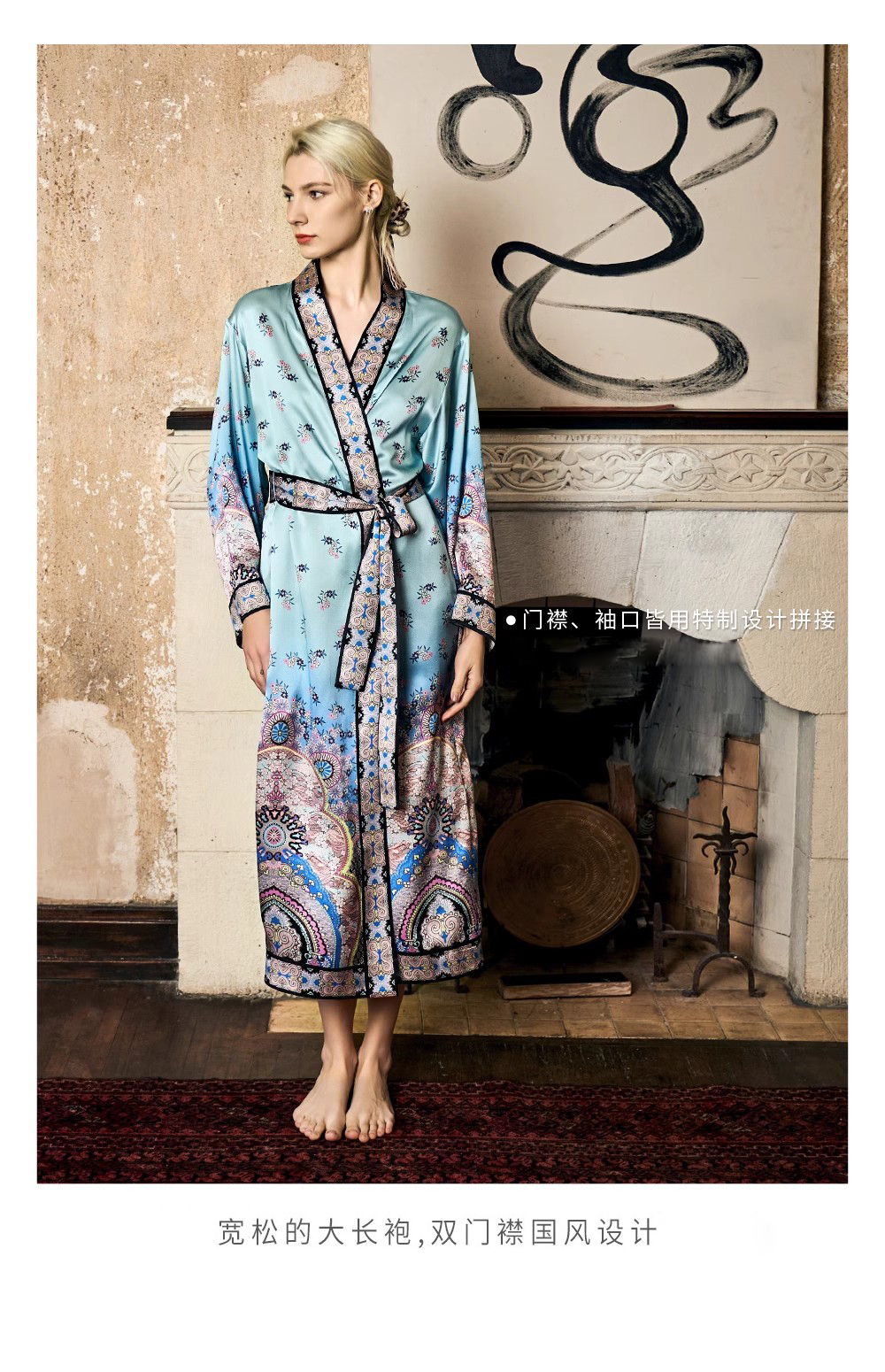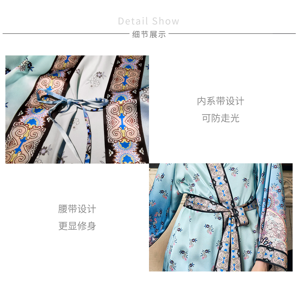 Solo seta22姆米重磅真丝睡袍女桑蚕丝凉感双门襟印花睡衣丝绸