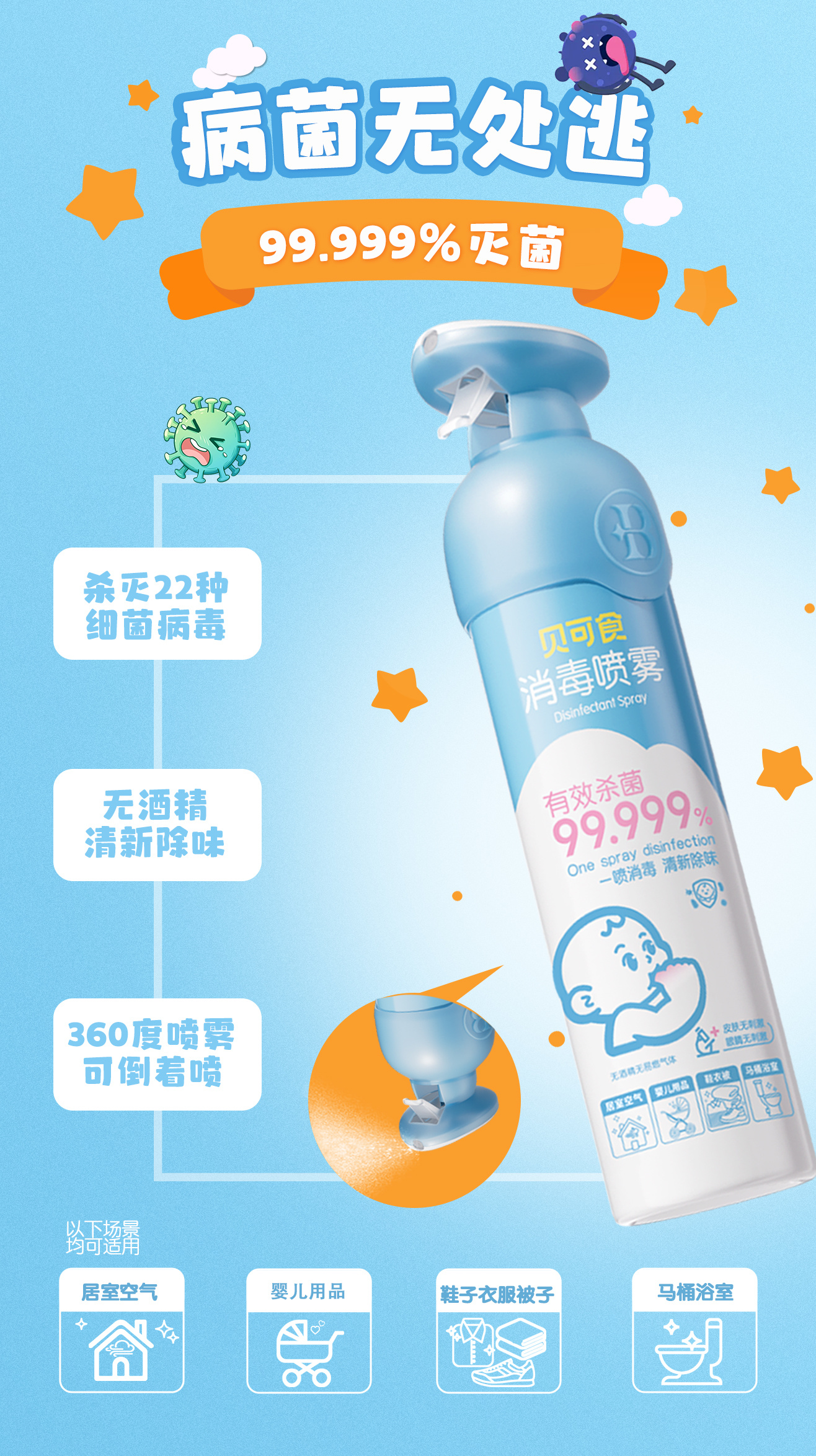 定期给宝贝的床品、桌椅、玩具...喷一喷,守护孩子健康成长