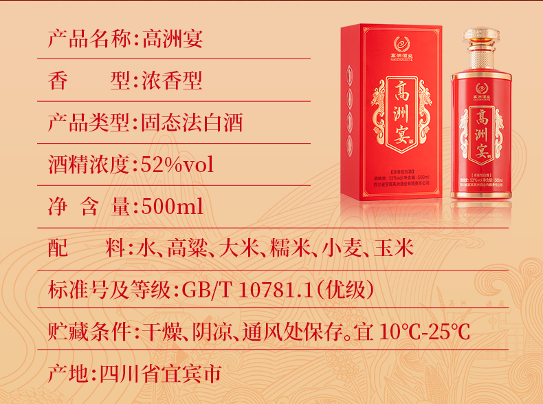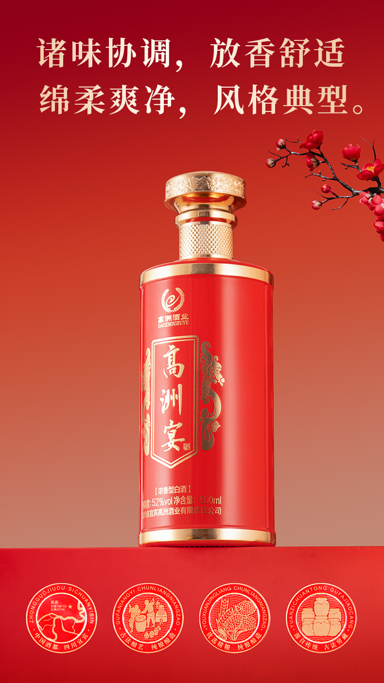 高洲宴52度浓香型纯粮好酒宴席好酒500ml