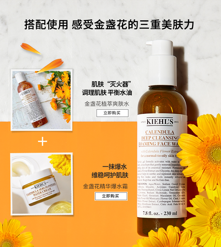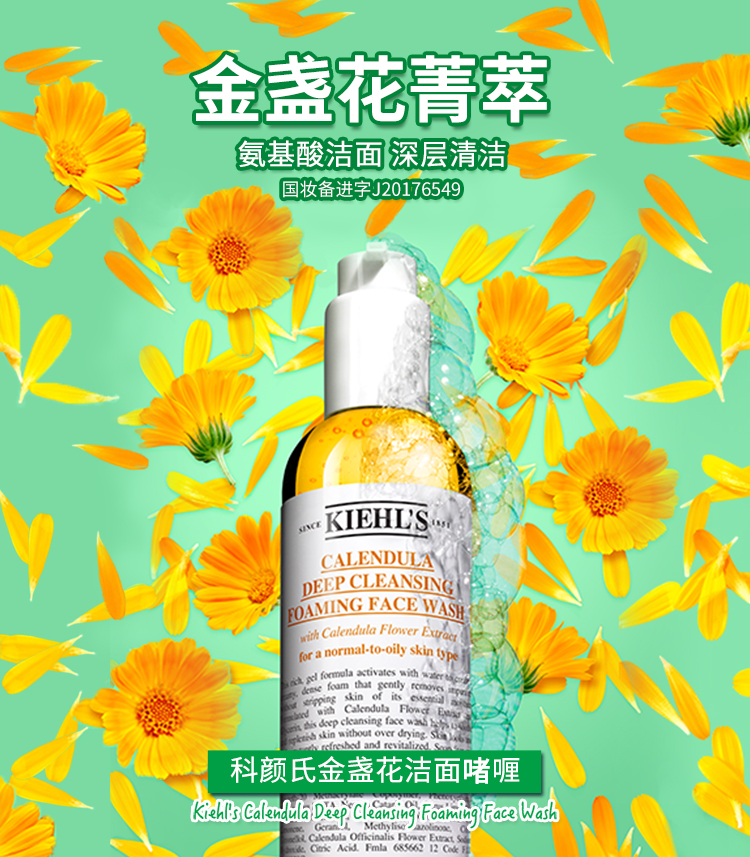 【精选包邮】正品科颜氏(Kiehl's)金盏花洁面230ml 氨基酸洗面奶祛痘 心选到家
