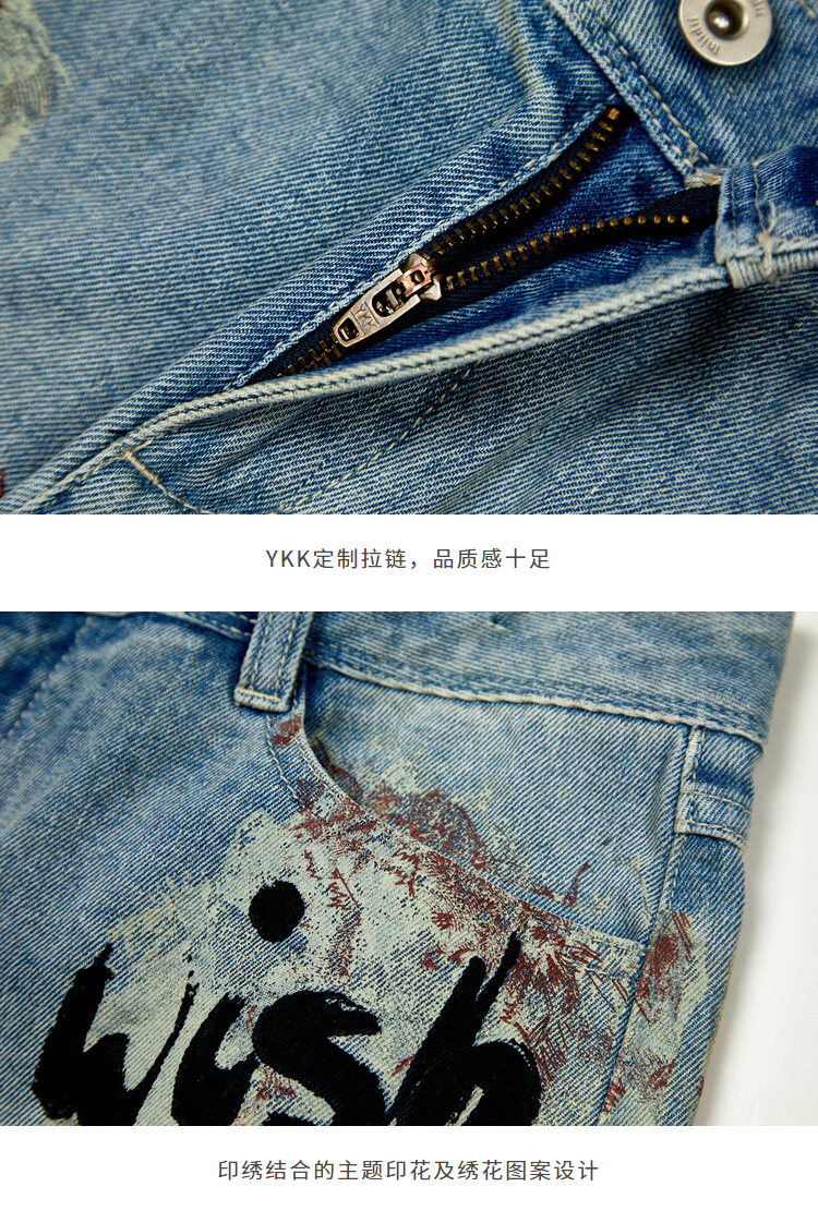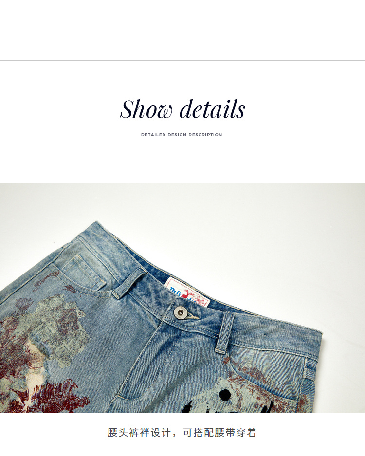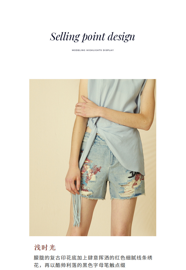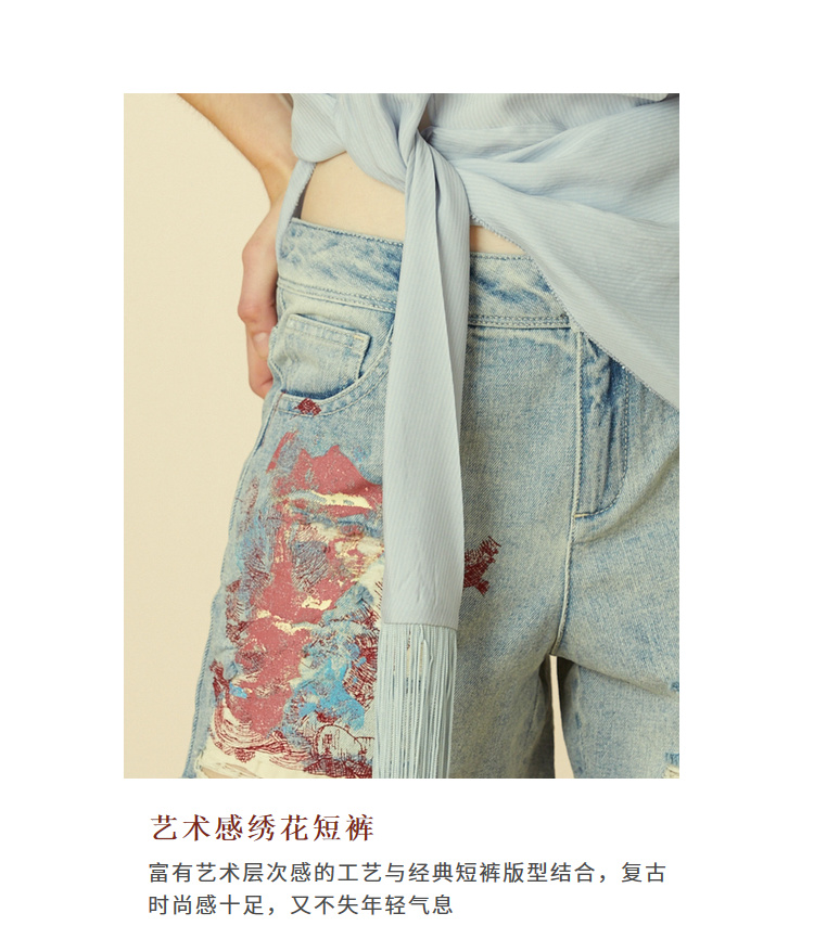 【商场同款】MIIDII/谜底纯棉牛仔短裤女20夏刺绣磨破202MK0909