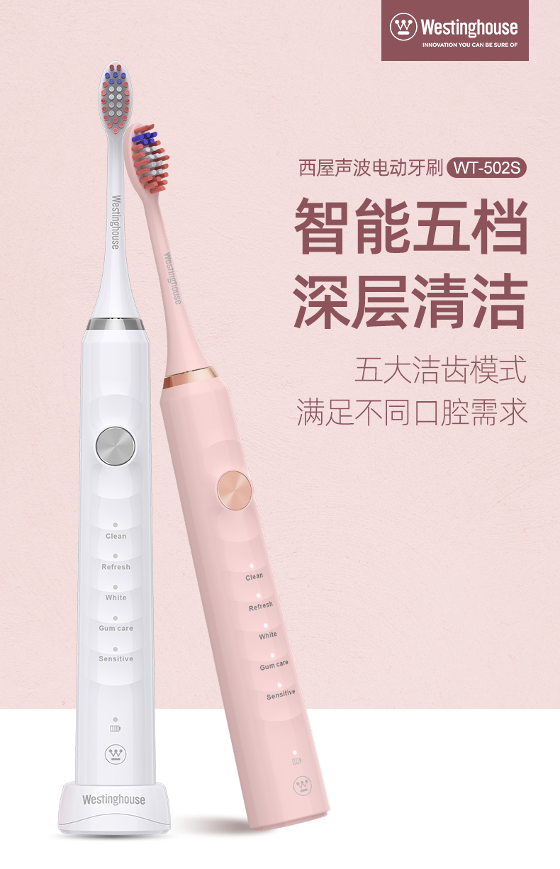 西屋(Westinghouse) 电动牙刷 多档变速全身防水 WT-502S