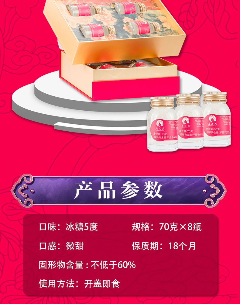 夫人燕窝 进口燕盏原材料 冰糖即食燕窝 牡丹仙子礼盒 70g*8瓶