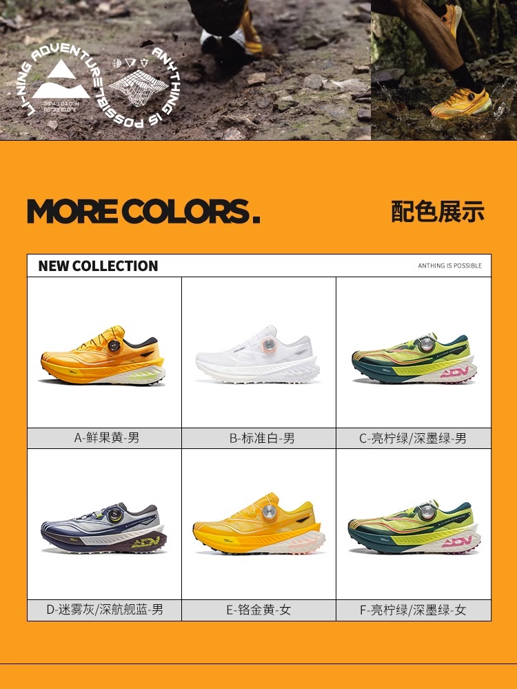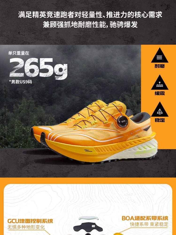 李宁 的卢PRO男女越野跑鞋防滑耐磨户外登山抓地䨻碳板跑鞋