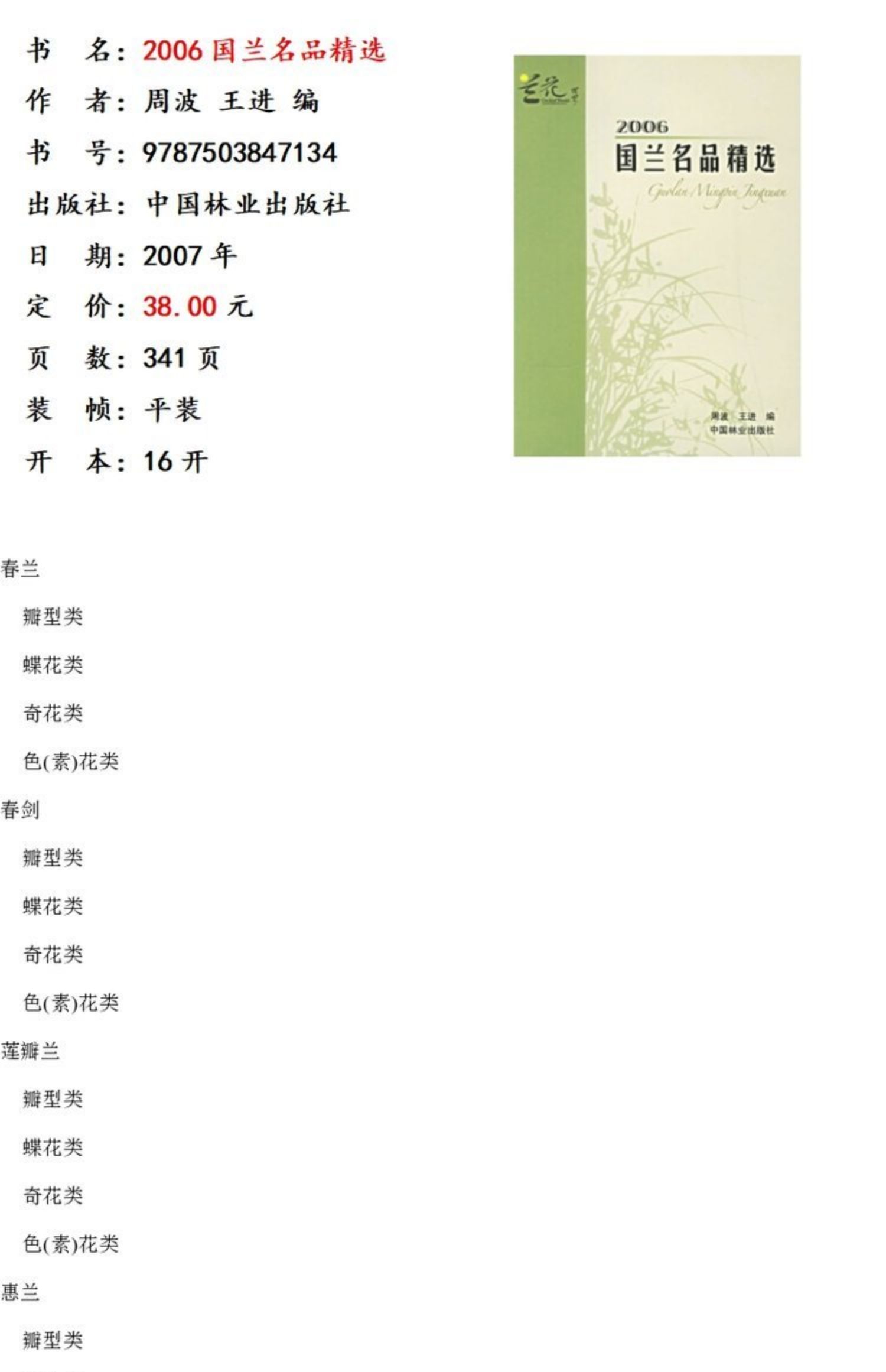 2006国兰名品精选 4713 口袋书 兰花世界 收藏图册 春兰春剑莲瓣兰惠兰四季兰瓣型类蝶花类奇花类色(素)花类 中国林业出版社畅销书