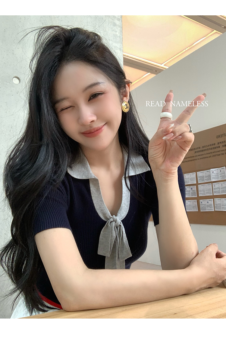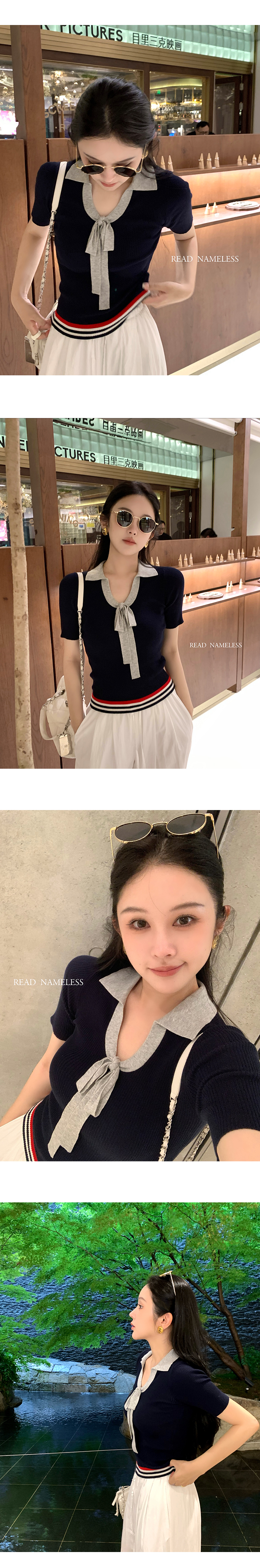 Read Nameless /Tb风藏青色蝴蝶结针织上衣 2025/7/28