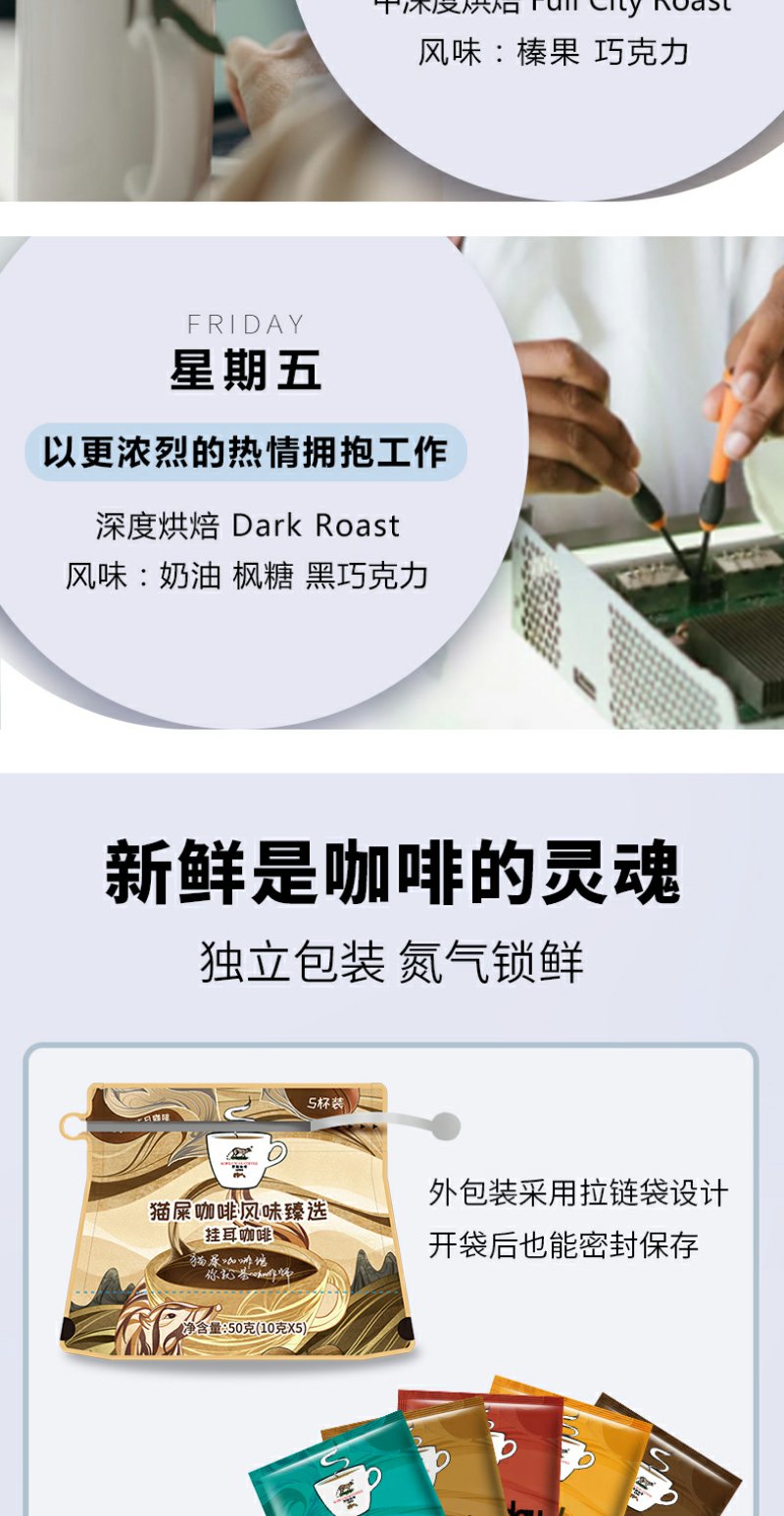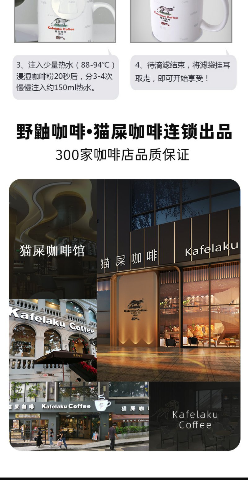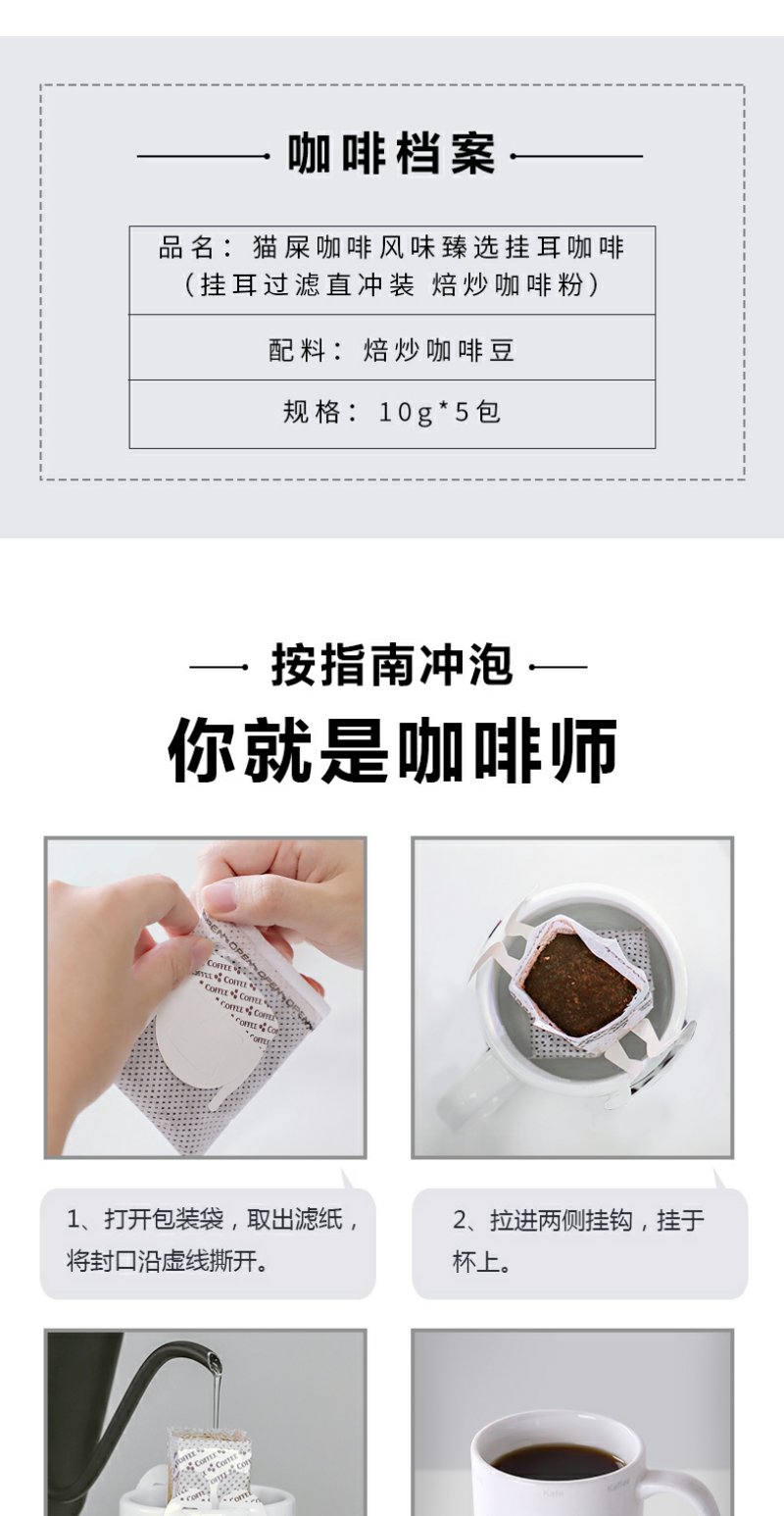 野鼬咖啡 猫屎咖啡风味臻选 手冲挂耳咖啡滤挂麝香猫 黑咖啡 10g*5