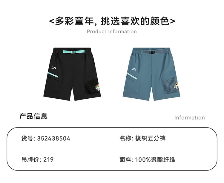 【超值】安踏儿童裤子男大童少年顽家梭织五分裤352438504 商品图5