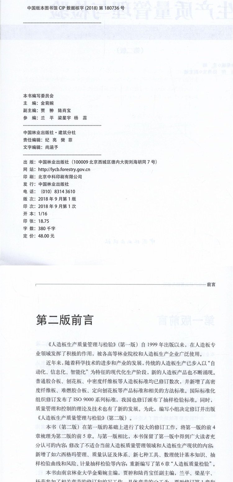 人造板生产质量管理与检验 9696 金菊婉 中国林业出版社