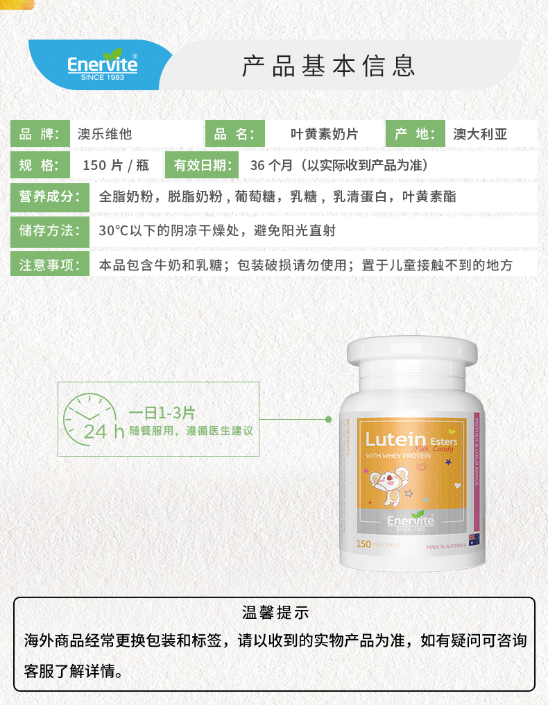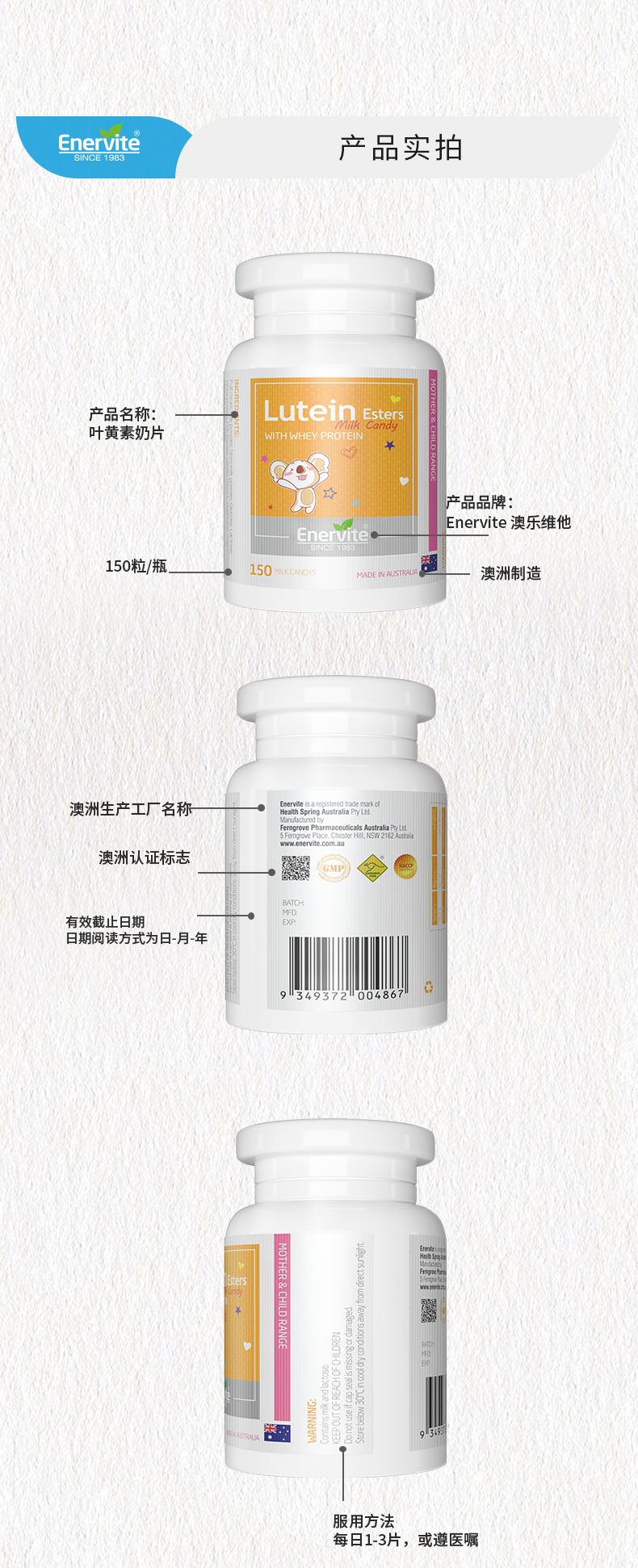 Enervite 澳乐维他 护眼片叶黄素奶片 150片/瓶