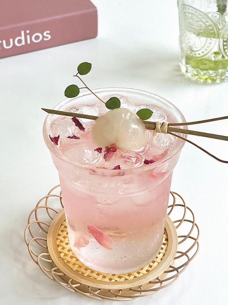 荔枝果味酒+雪碧/苏打水+小青柠汁+薄荷叶+碎冰,绝了❗