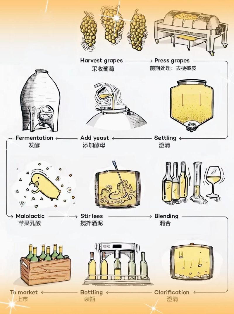 👉从采摘、分选、清洗、剥壳、去核、榨汁、低温澄清、控温发酵、倒罐、低温储酒、澄清、除菌膜过滤、灌装到成品👏
