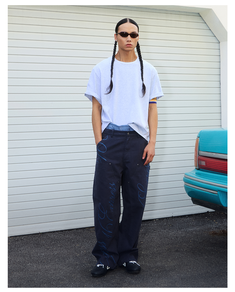GOODBAI 916 EXPRESS 复古暗纹字母印花宽松工装裤长裤