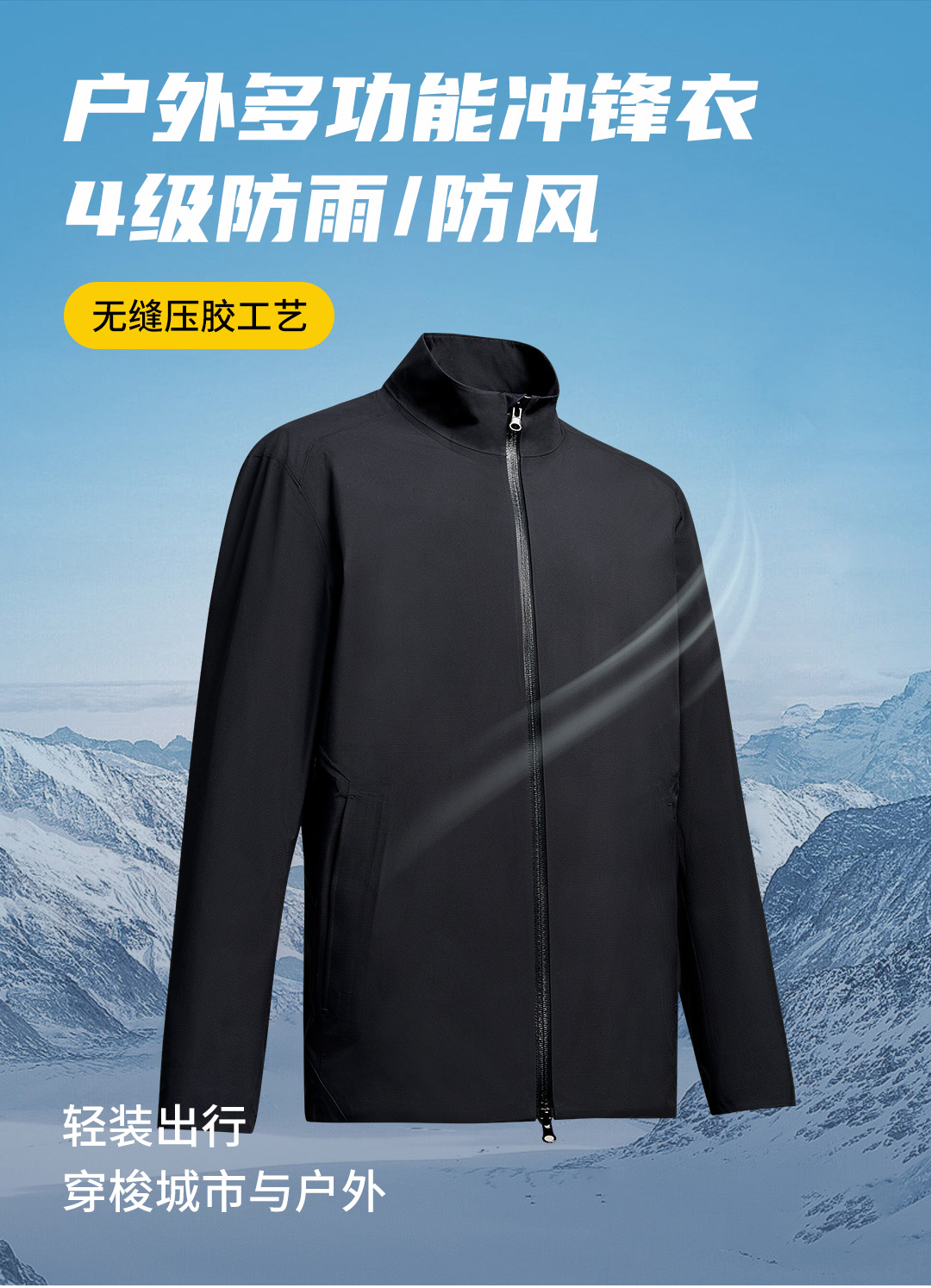 【大师系列】全件无痕4级拒水防风户外多功能真冲锋衣249C0J510N