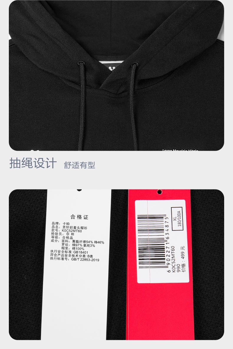 Kappa套头帽衫2022新款男秋运动卫衣休闲长袖外套K0C52MT60
