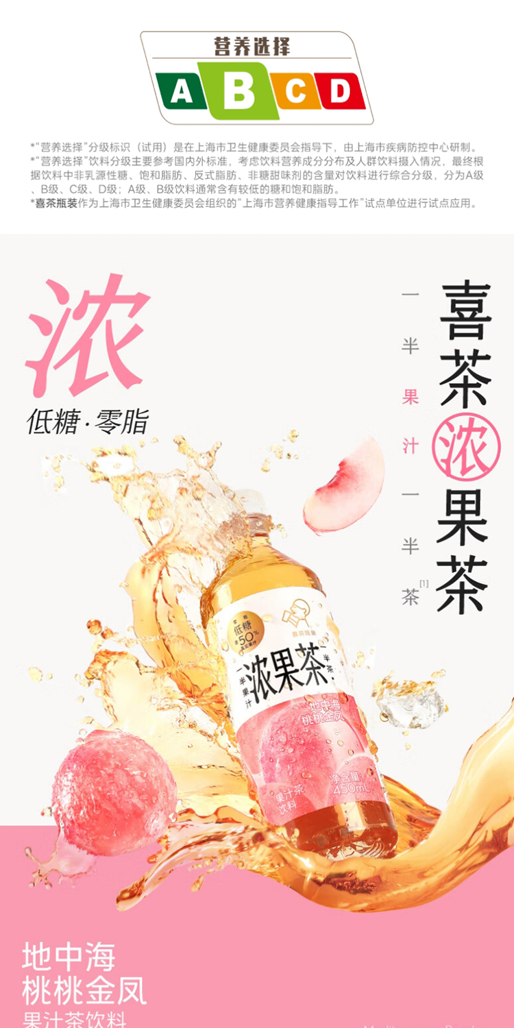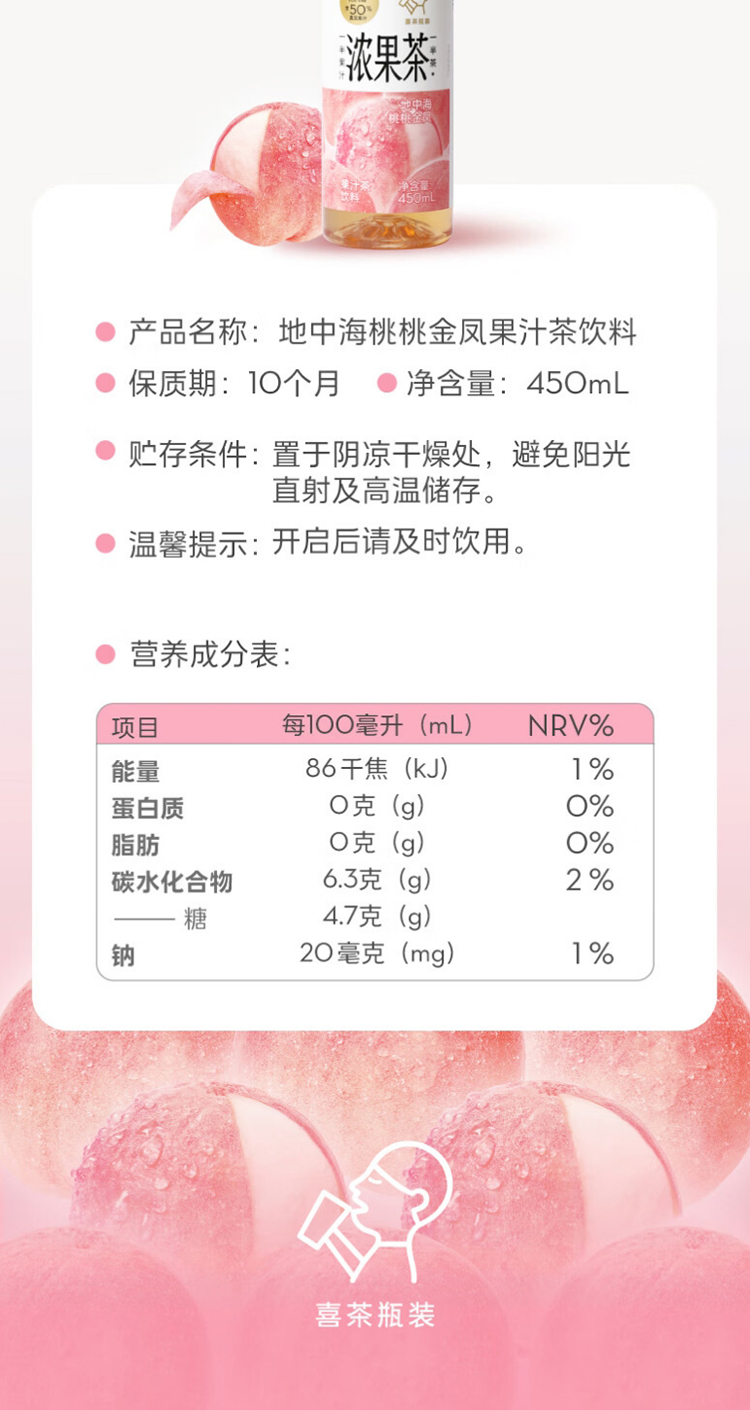 喜茶浓果茶地中海桃桃金凤450ml*15瓶整箱