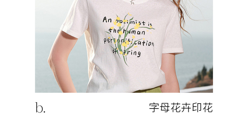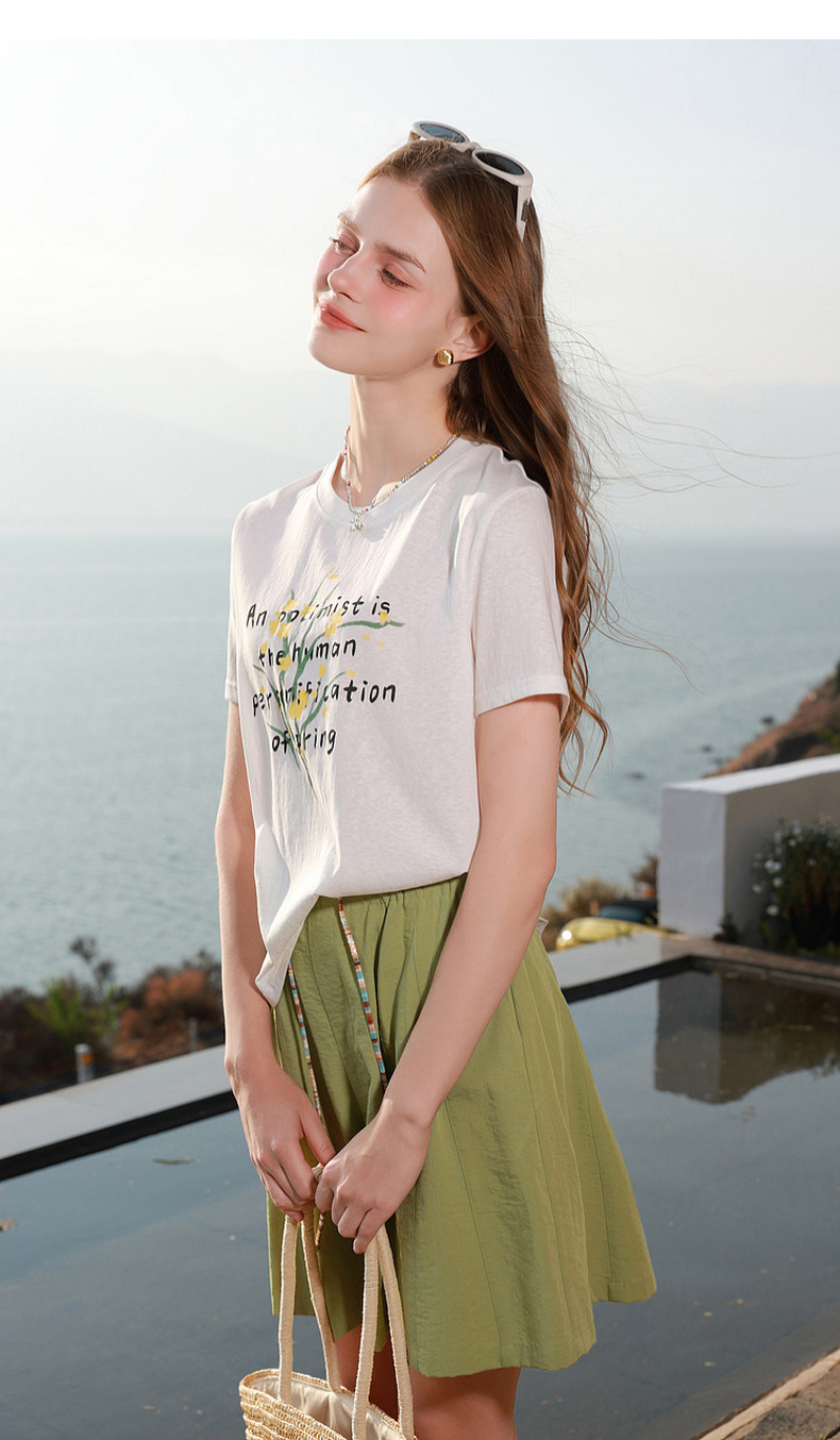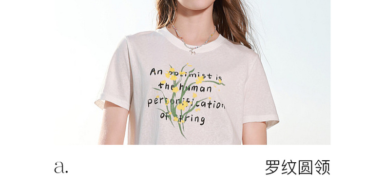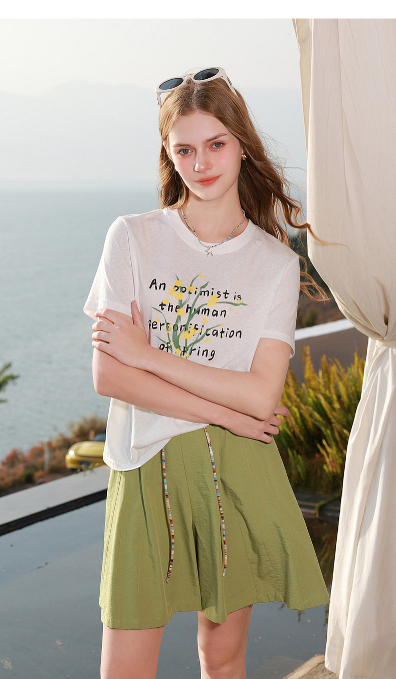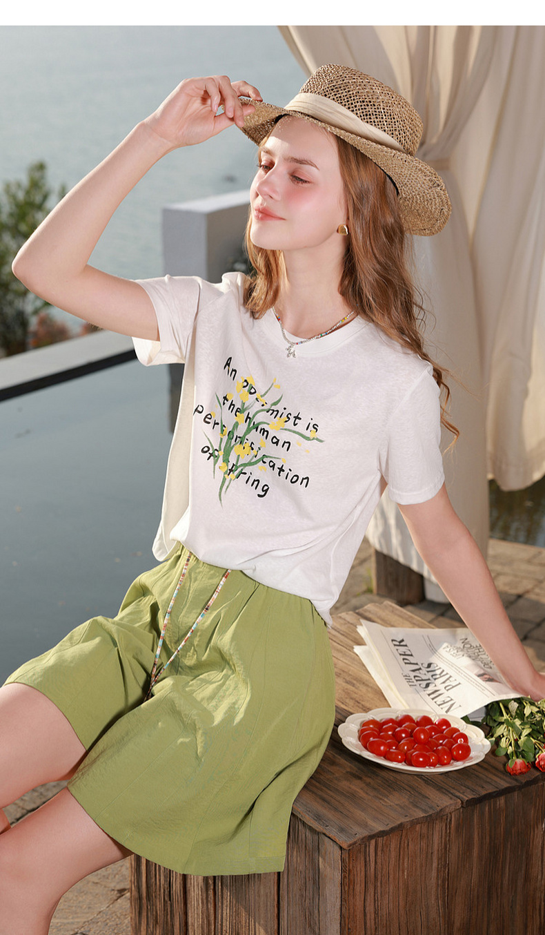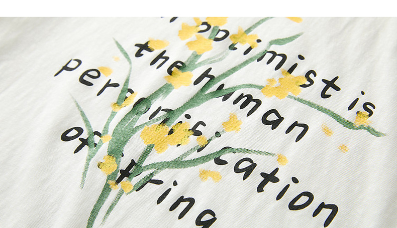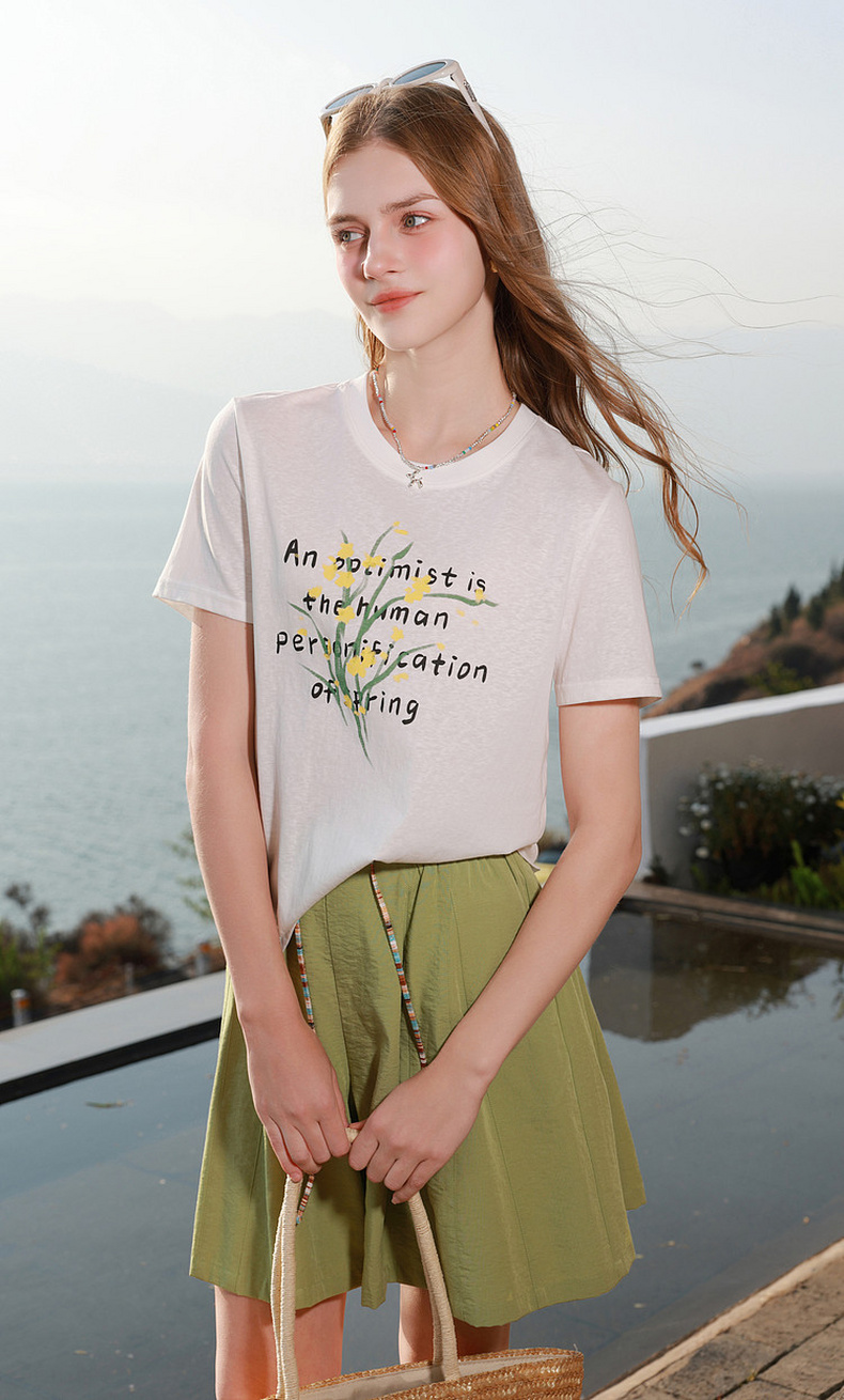 三彩2026夏季新款字母花卉印花T恤短袖上衣宽松套头衫M