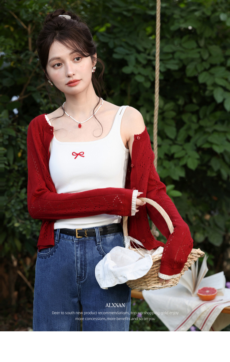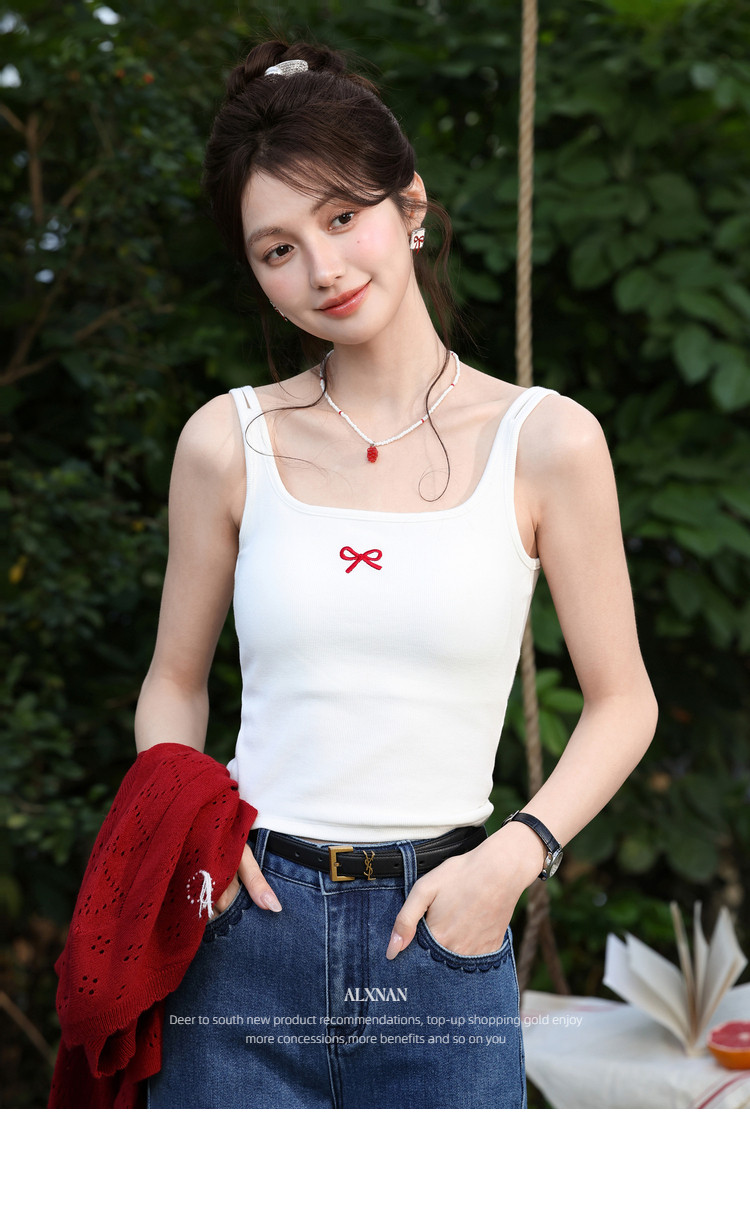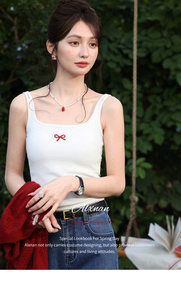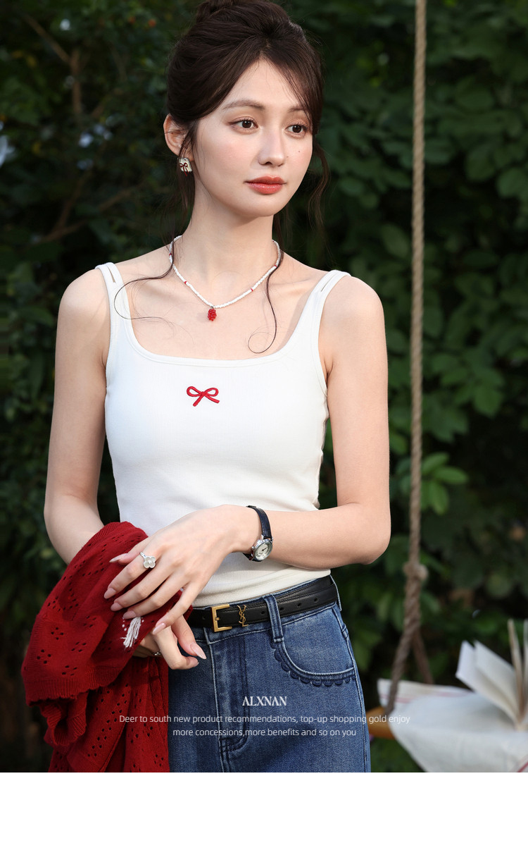 鹿向南「漫春柔叙」白色无袖内搭背心女春夏修身短款吊带打底衫