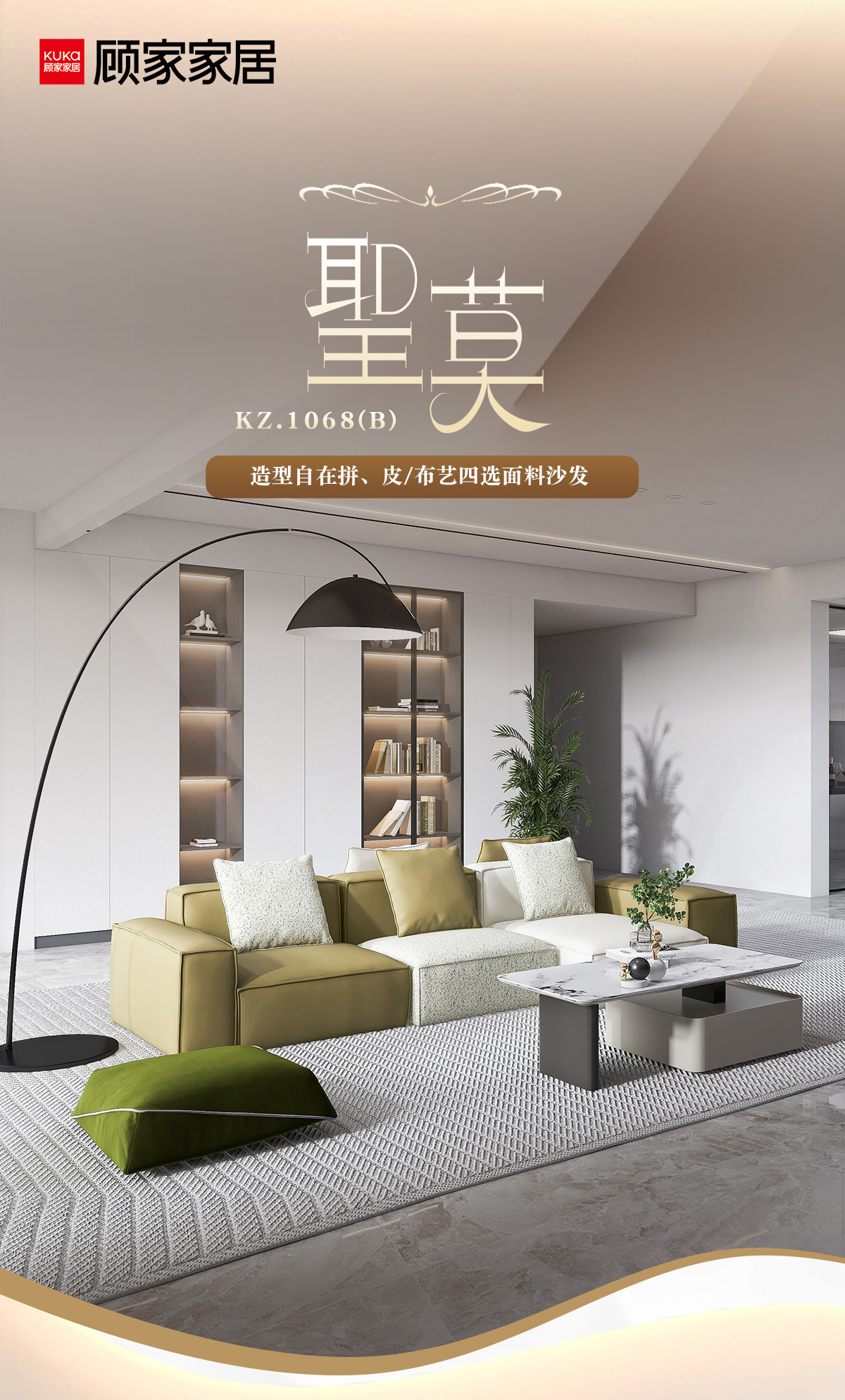 顾家家居整装 意式极简 皮/布艺沙发 KZ.1068B 圣莫