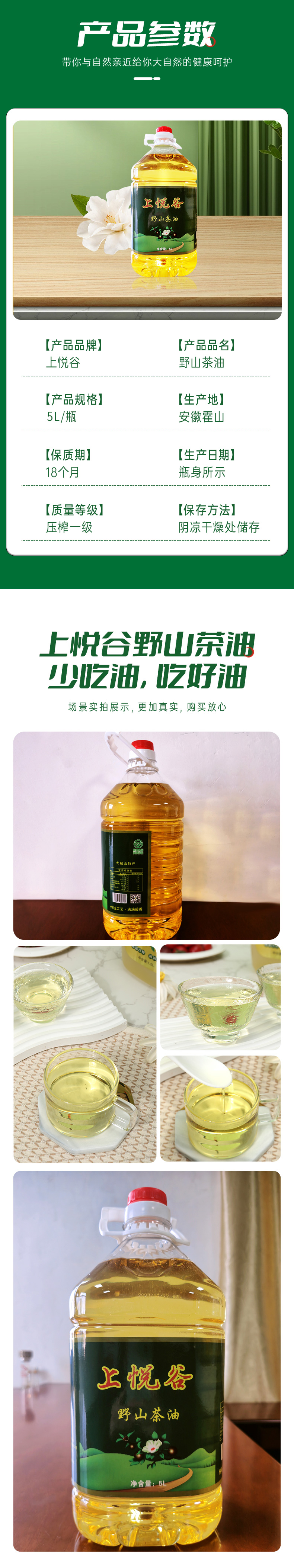 【上悦谷】大别山野山茶油5L家庭装 拒绝调和 物理压榨
