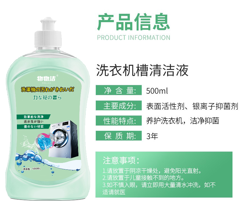 物物洁洗衣机清洁剂500ml/瓶去除异味保持清新机槽清洁剂滚筒波轮式洗衣机除垢剂除螨非泡腾片洗衣机除垢清洁神器