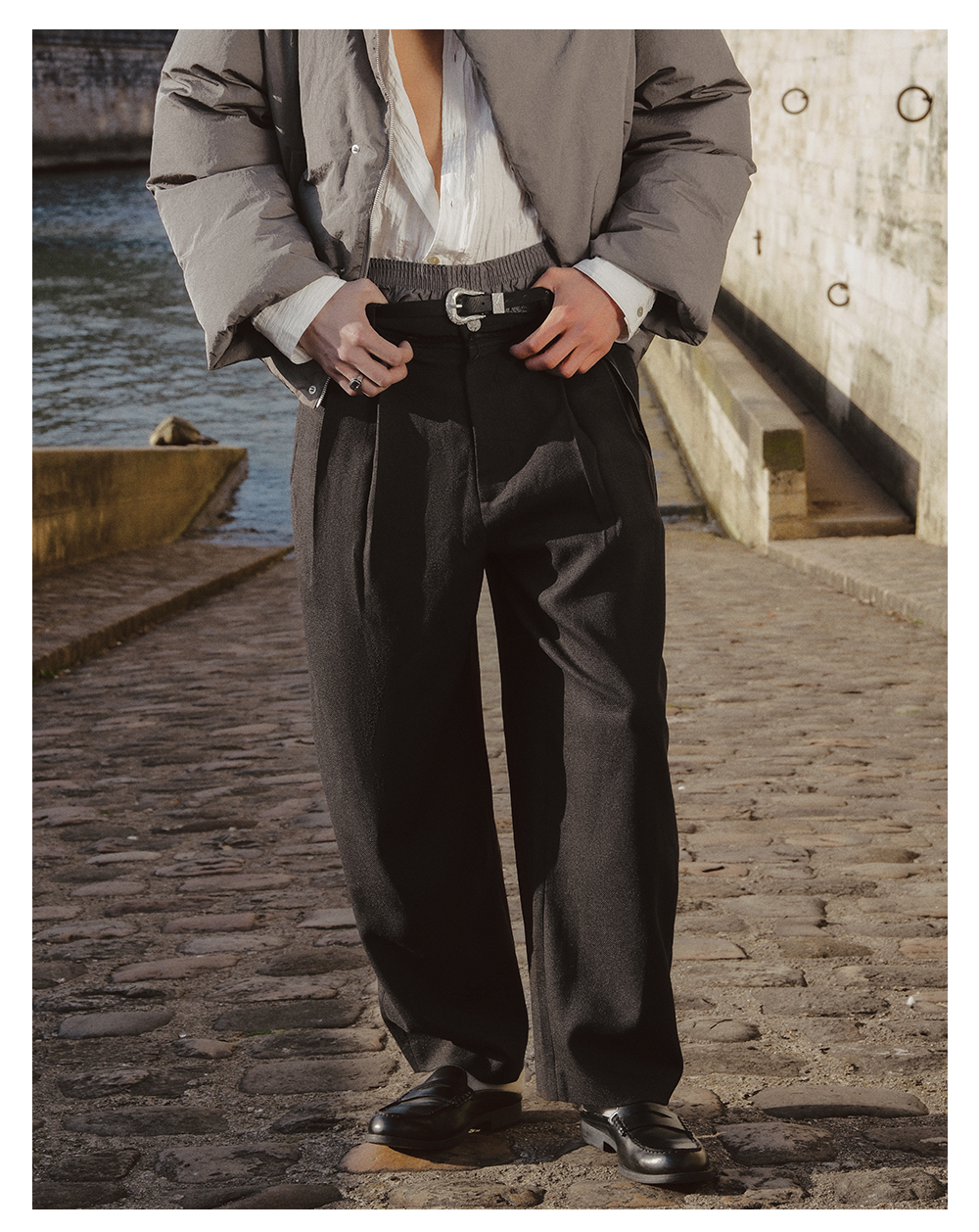 GOODBAI 916 打褶纯色阔腿直筒休闲长西裤