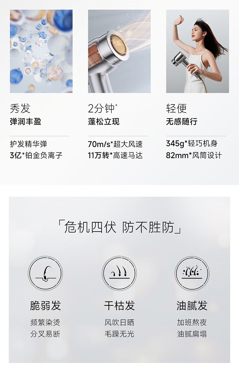追觅 家用电吹风 恒温速干精华护发吹风筒 负离子高速吹风机 高速吹护机 韶光精华版