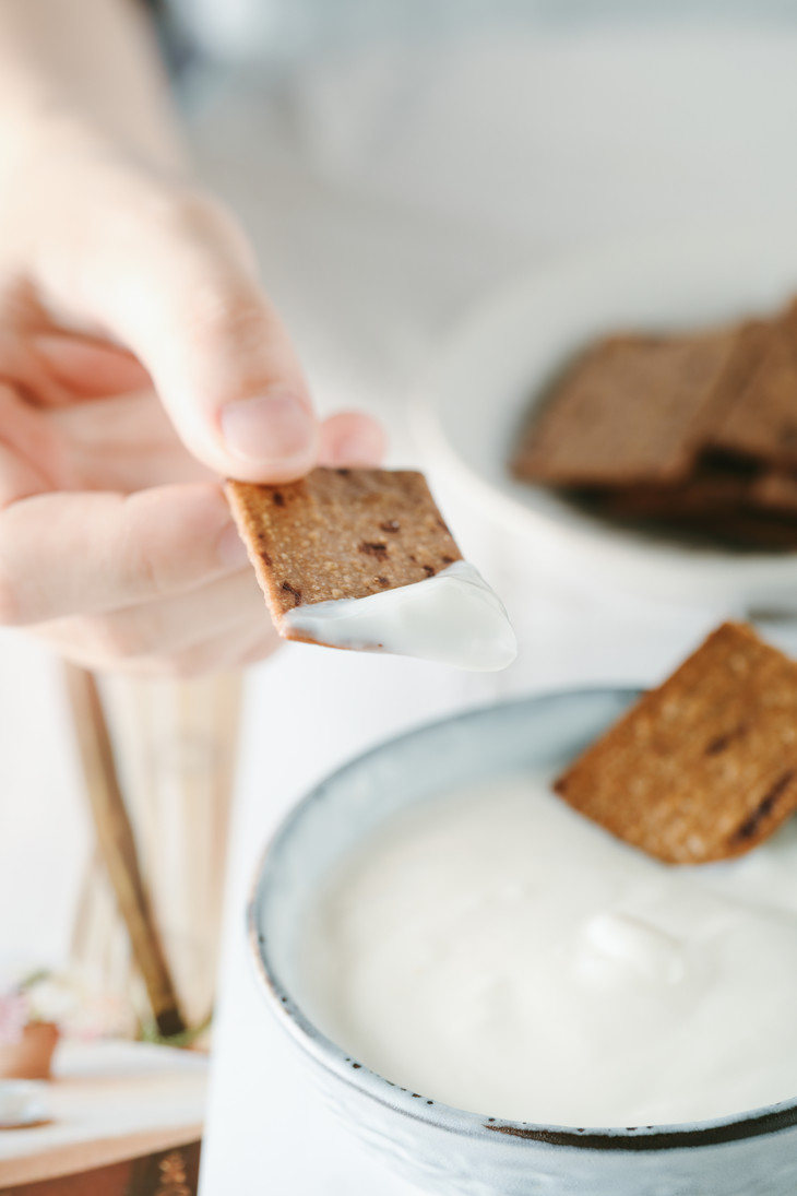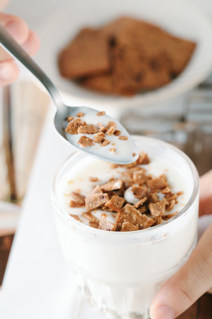 与酸奶搭配 饼干掰碎丢在酸奶伴着吃, 酸甜丝滑里,又有咖啡黑巧 好吃到把奶盖都想舔干净 亦或是,搭配冰淇淋吃,又是一番惊喜。