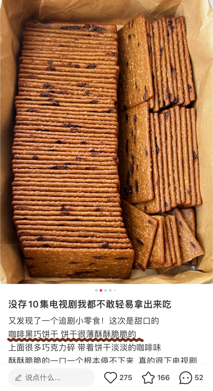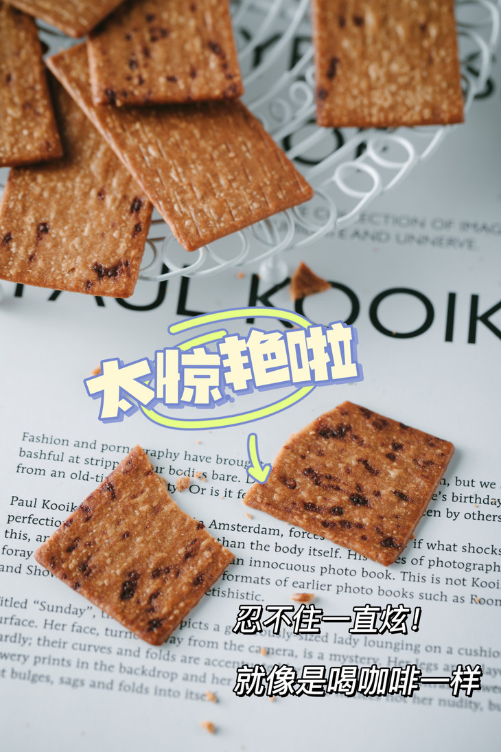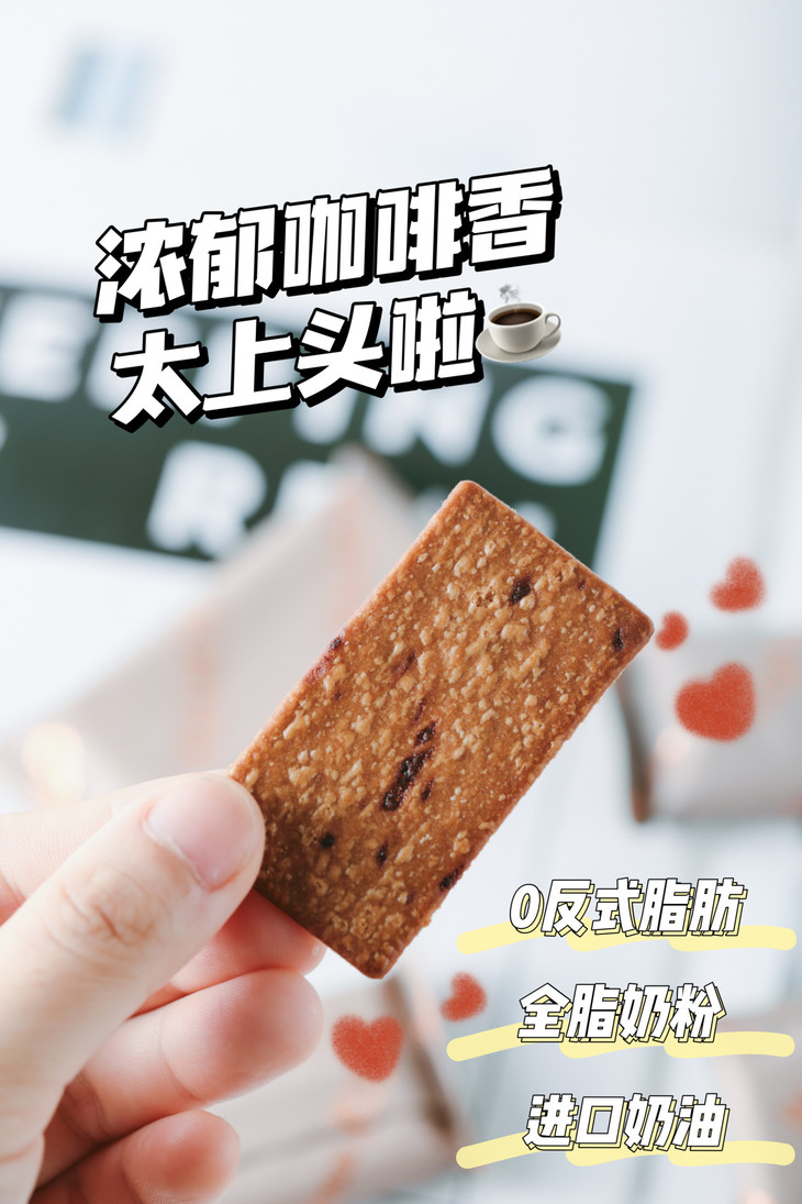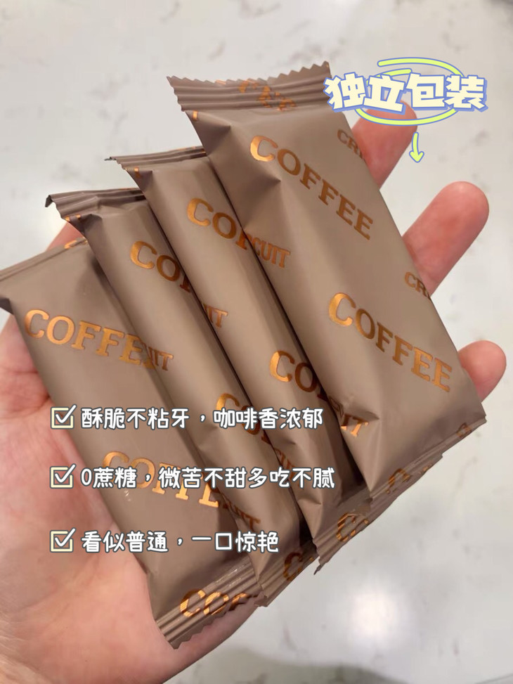 一块薄薄饼干 一份大大能量 做早餐,做下午茶,做休闲小零食 和咖啡的甘香苦甜作伴。 ✅独立包装,很适合早八人携带当早餐吃 下午上班累了吃一包还很提神! 每一口都“咖”嚓好吃~