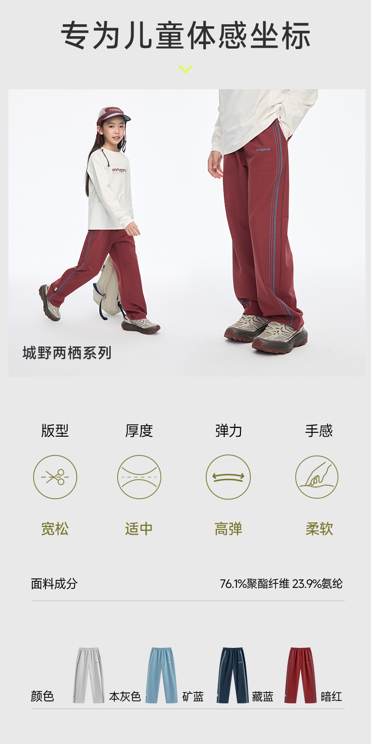 onmygame 【城野两栖】男女童裤子吸湿速干3A抗菌运动裤2026新款 GQ1E219440