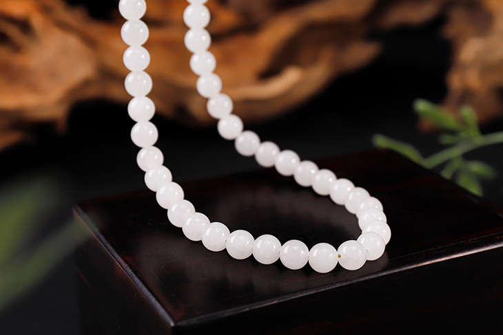 珠光流转,温婉动人。 精选8mm珍藏级和田白玉圆珠,每颗皆经匠心甄选,质地细腻,光泽柔和,串联成链,宛如月光流淌,温婉动人。