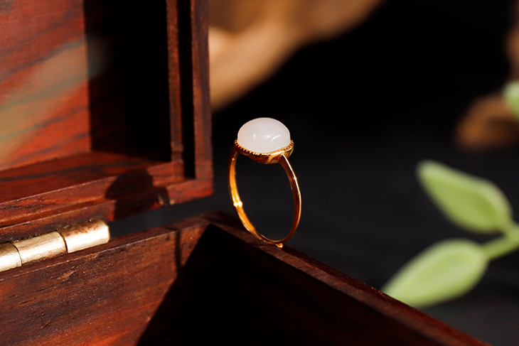 ①珠宝级和田白玉《方糖》戒指