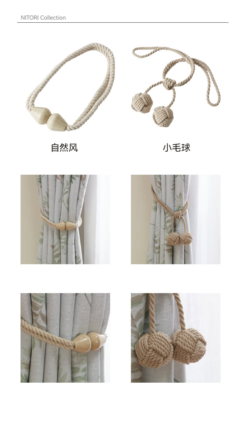窗帘绑带绑绳窗帘配件窗穗 自然风 小毛球单个装